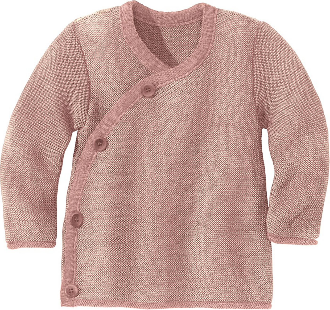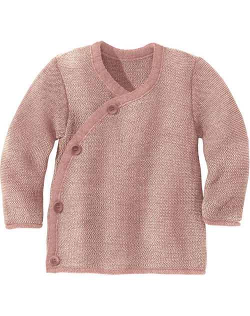 Wunderbar weiche Merinowolle-Jacke in edlem Melange-Strick von DISANA. Sie bietet viel Bewegungsfreiheit und engt nicht ein, da sie besonders dehnfähig und elastisch ist. Steinnuss-Knöpfe außen und ein Bindeband auf der Innenseite sorgen für einen sicheren Verschluss.