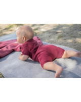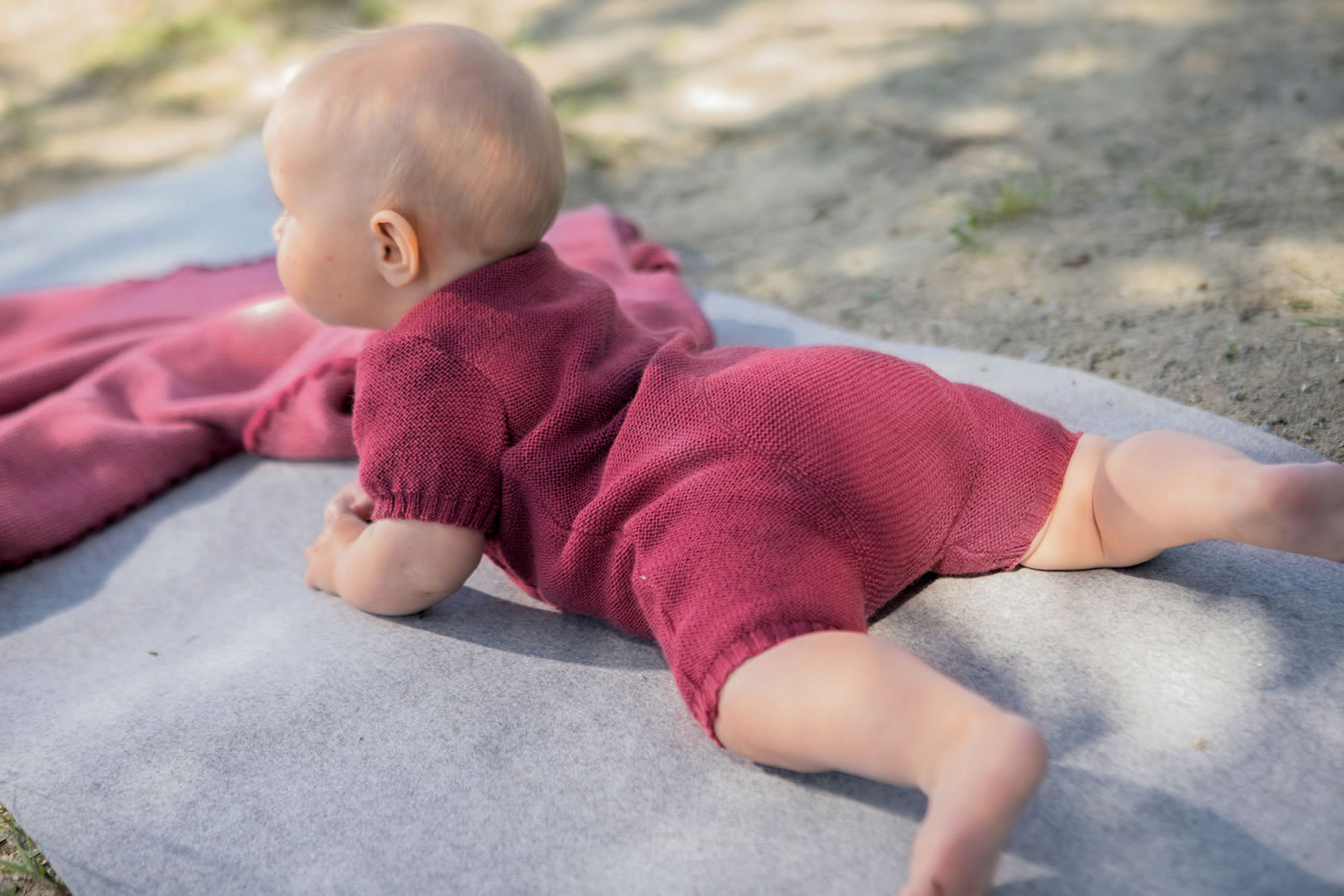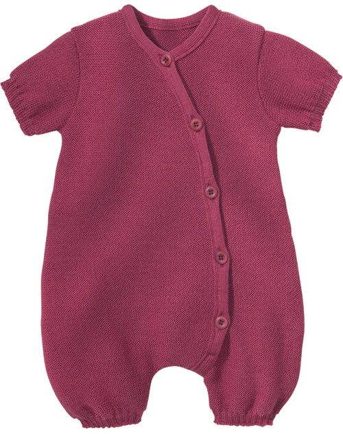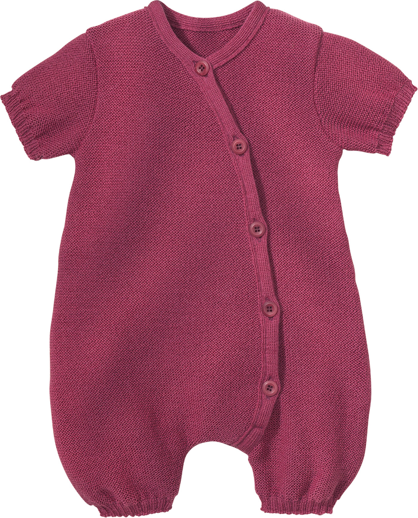Edler Strick-Spieler aus feiner Merinowolle mit kurzen Armen und Beinen von DISANA. Die die durchgehende Knopfleiste auf der Vorderseite machen das An-und Ausziehen zu einem Kinderspiel.