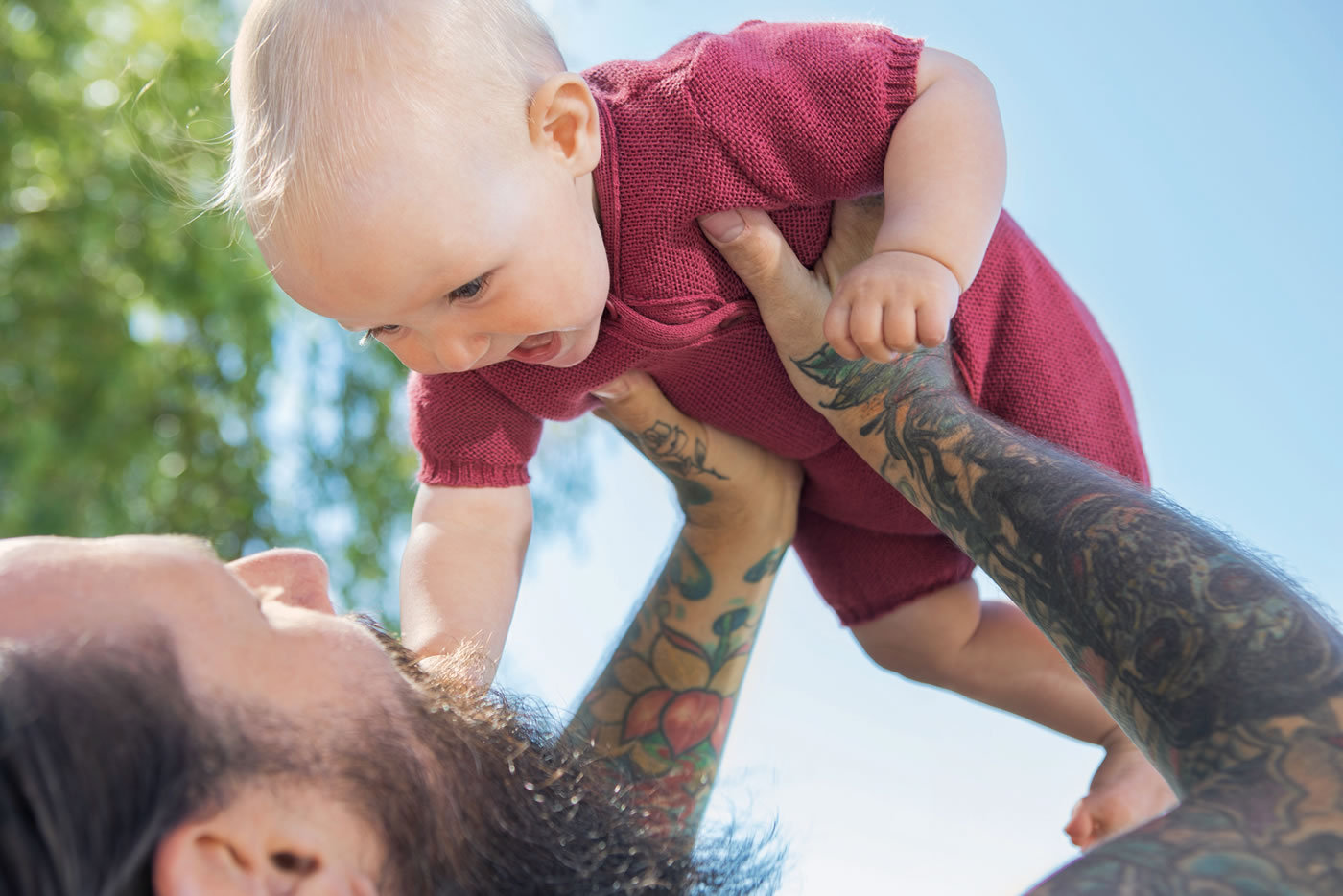 Strick-Overall bzw. Strampler: Diese fallen aufgrund ihrer umklappbaren Stulpen an Armen und Beinen groß aus. Dies ist notwendig, damit diese sich richtig umklappen lassen.