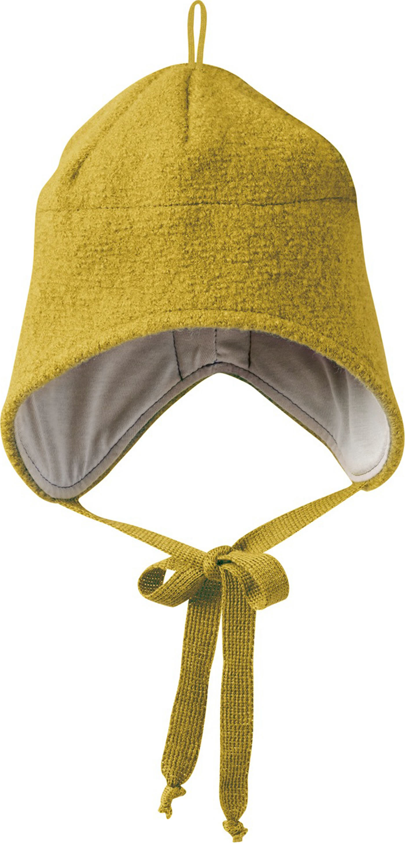 Disana Walk-Mütze m. Bänder Schurwolle GOTS curry