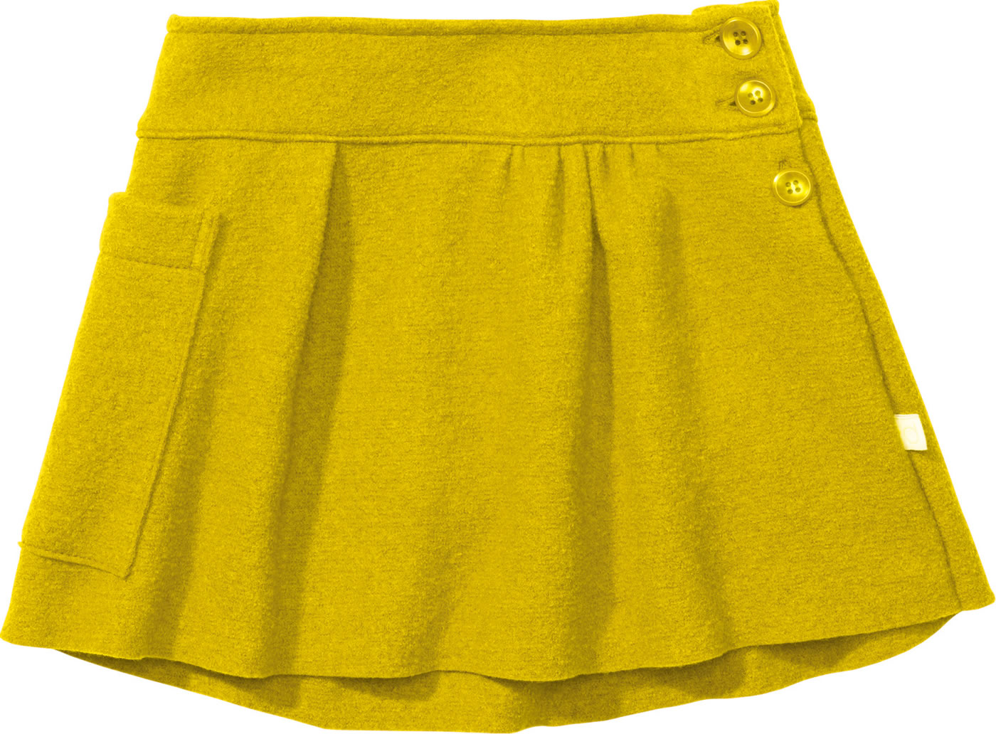 Hochwertiger Walk-Rock aus Schurwolle von DISANA. der Rock hat eine weiten Schnitt und schwingt und weht beim Drehen. Die Leiste aus Steinnuss-Knöpfen erleichtert den jungen Damen das An- und Ausziehen. Der Taillenbund ist mit weichem Baumwoll-Stoff gefüttert und verbirgt ein Gummiband, mit dem sich die Weite regulieren läßt. Die Rückseite ist etwas länger geschnitten. Eine große Tasche bietet Platz für allerlei Schätze.