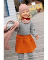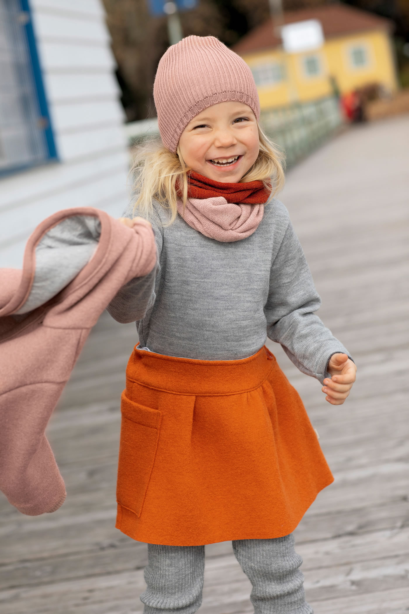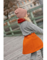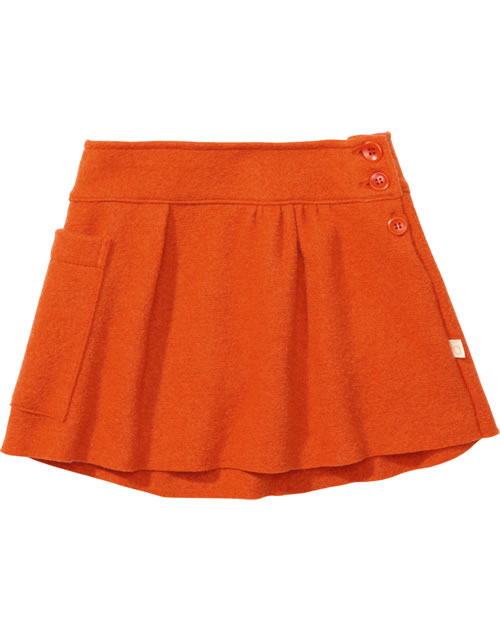 Hochwertiger Walk-Rock aus Schurwolle von DISANA. der Rock hat eine weiten Schnitt und schwingt und weht beim Drehen. Die Leiste aus Steinnuss-Knöpfen erleichtert den jungen Damen das An- und Ausziehen. Der Taillenbund ist mit weichem Baumwoll-Stoff gefüttert und verbirgt ein Gummiband, mit dem sich die Weite regulieren läßt. Die Rückseite ist etwas länger geschnitten. Eine große Tasche bietet Platz für allerlei Schätze.