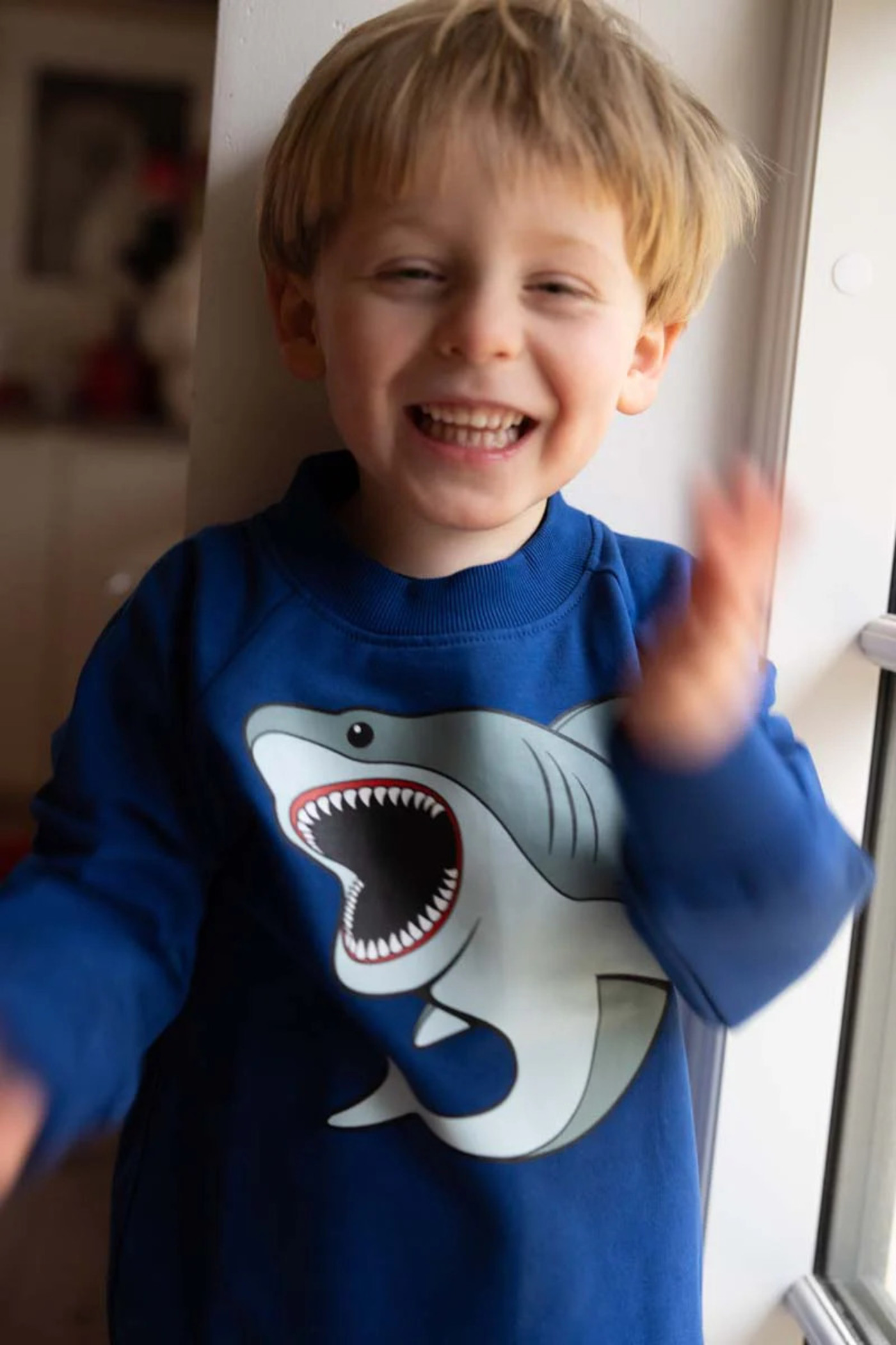 Hochwertig verarbeitetes Sweatshirt von Dyr by Danefae mit coolem Hai-Print auf der Vorderseite.