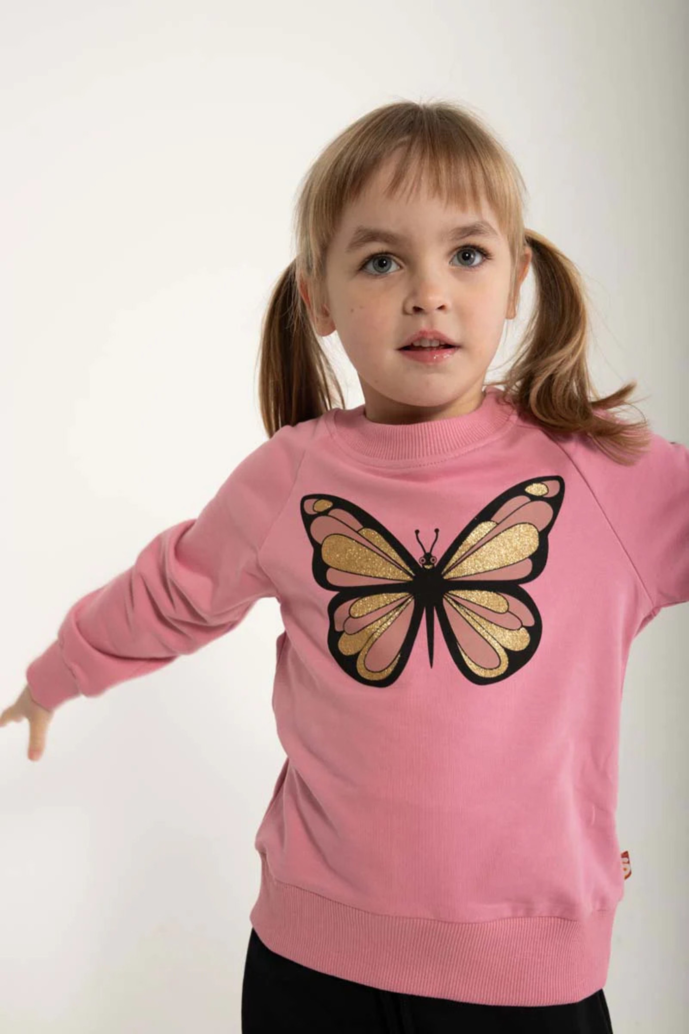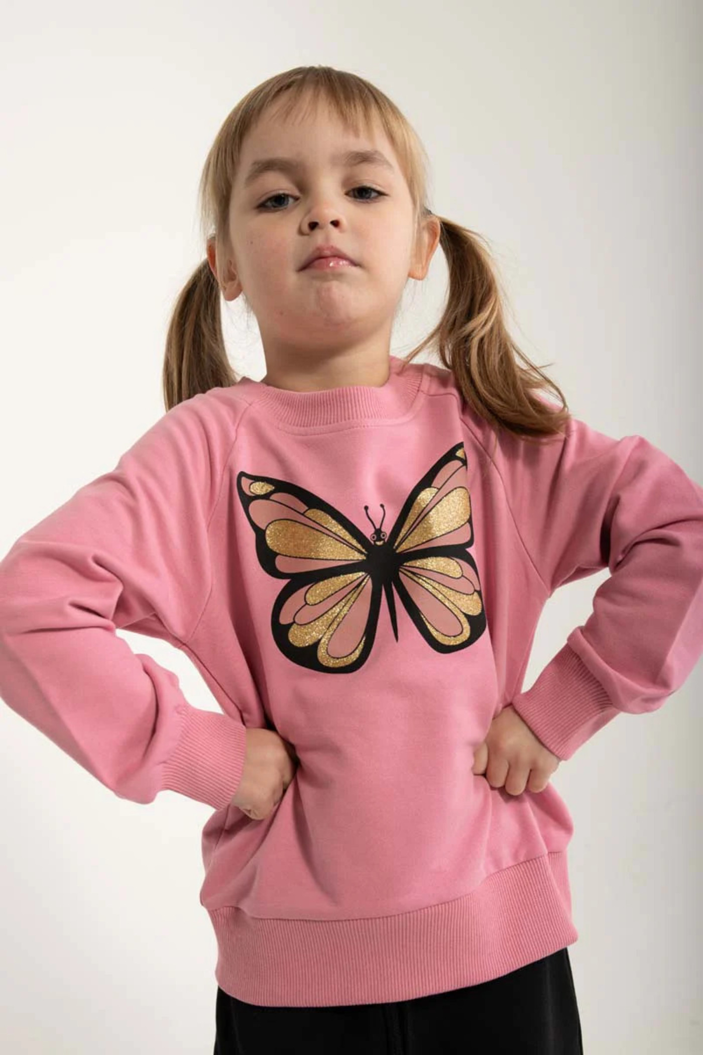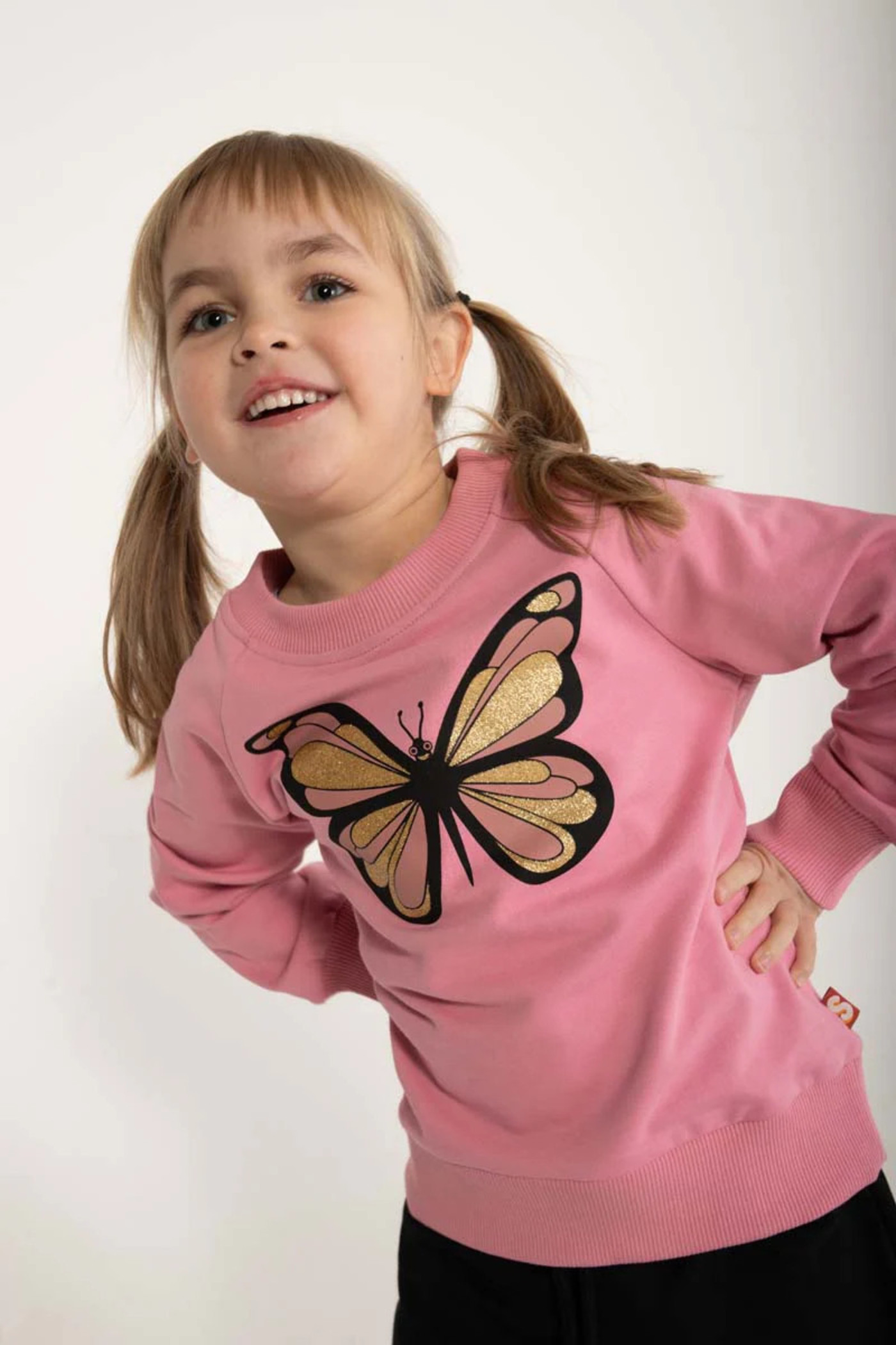 Dieses tolle Sweatshirt von DYR besteht aus angenehmer Bio-Baumwolle und trägt einen hübschen Schmetterlings-Print mit zauberhaftem Glitzergold.