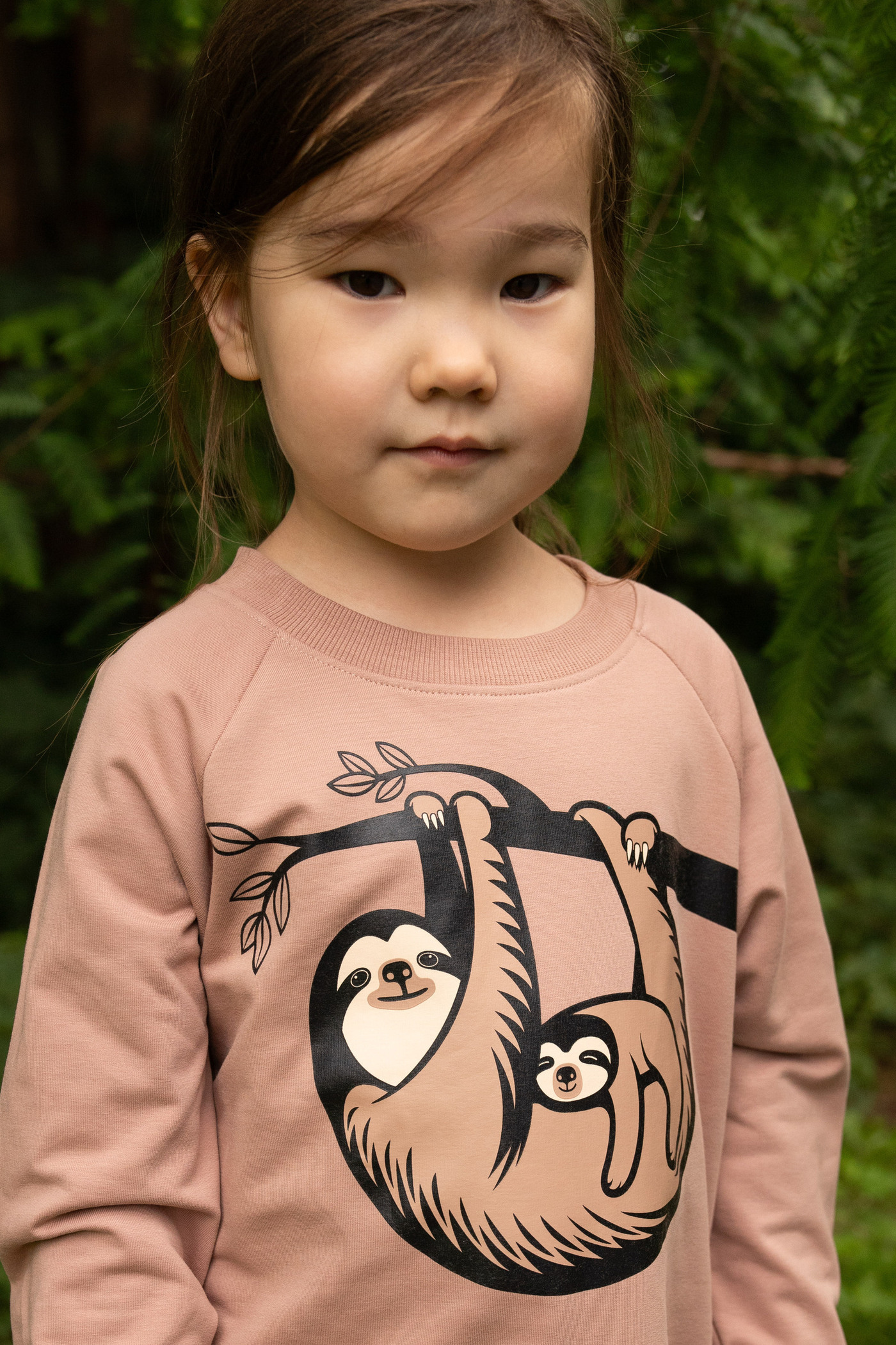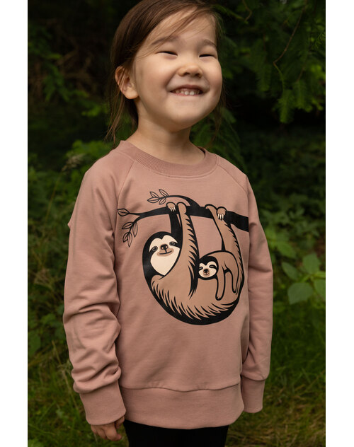 Hochwertig verarbeitetes Sweatshirt von Dyr by Danefae mit hübschem Faultier-Motiv auf der Vorderseite. Das Sweatshirt ist innen kuschlig weich angeraut, so hält es an kühleren Tagen schön warm. Bündchen an Ärmeln und Bund geben zusätzlichen Halt.