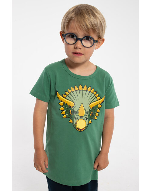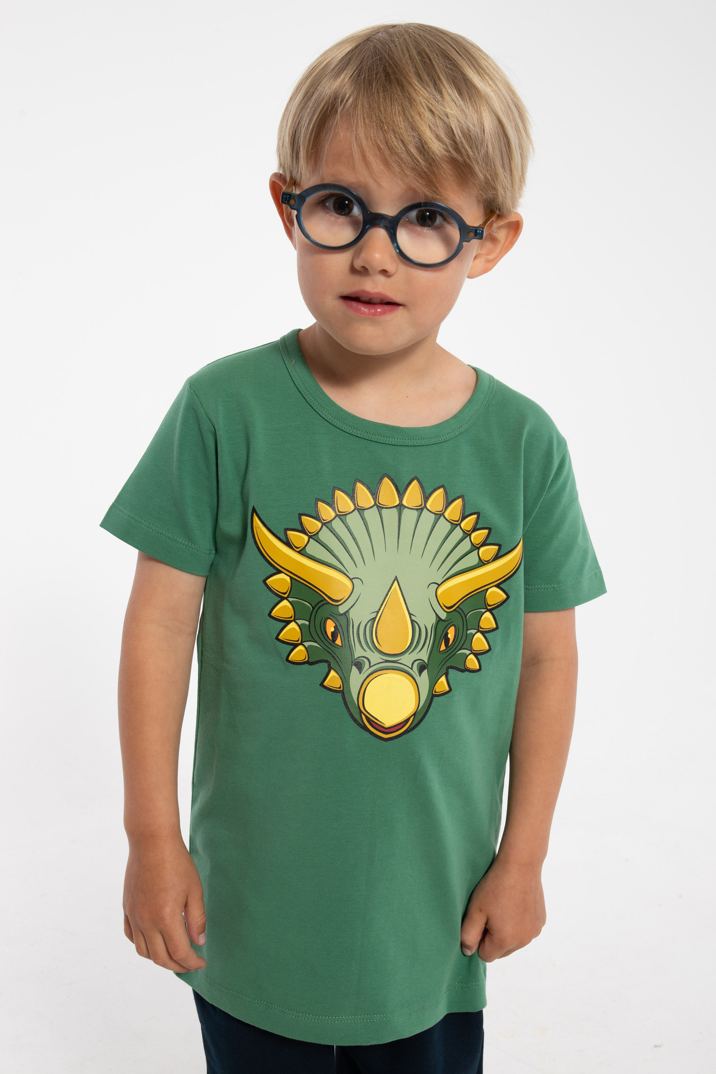 Dyr T-Shirt Kurzarm "Dyrgrowl" aus Bio-Baumwolle - Fatique Green Triceratops