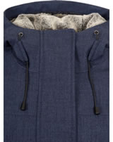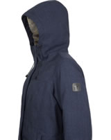 Die Innenseite der Kapuze besitzt ein kuscheliges Teddyfleece. Der Reißverschluss, der sich in beide Richtungen öffnen lässt, ist sowohl mit einem Kinnschutz als auch mit einem Windschutz versehen. Zwei Reißverschlusstaschen auf der Vorderseite bieten Platz für die wichtigsten Utensilien. Innen ist die Jacke warm gefüttert. Ein praktisches Extra: Die Baby-Erweiterung “nearby”, die sich in die Jacke zippen lässt (ist nicht enthalten).
