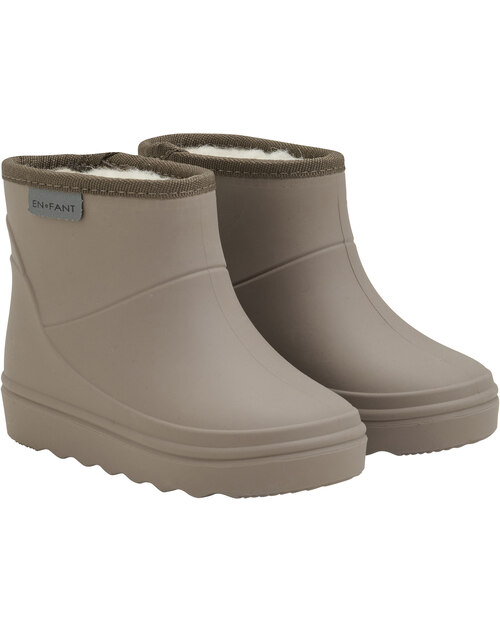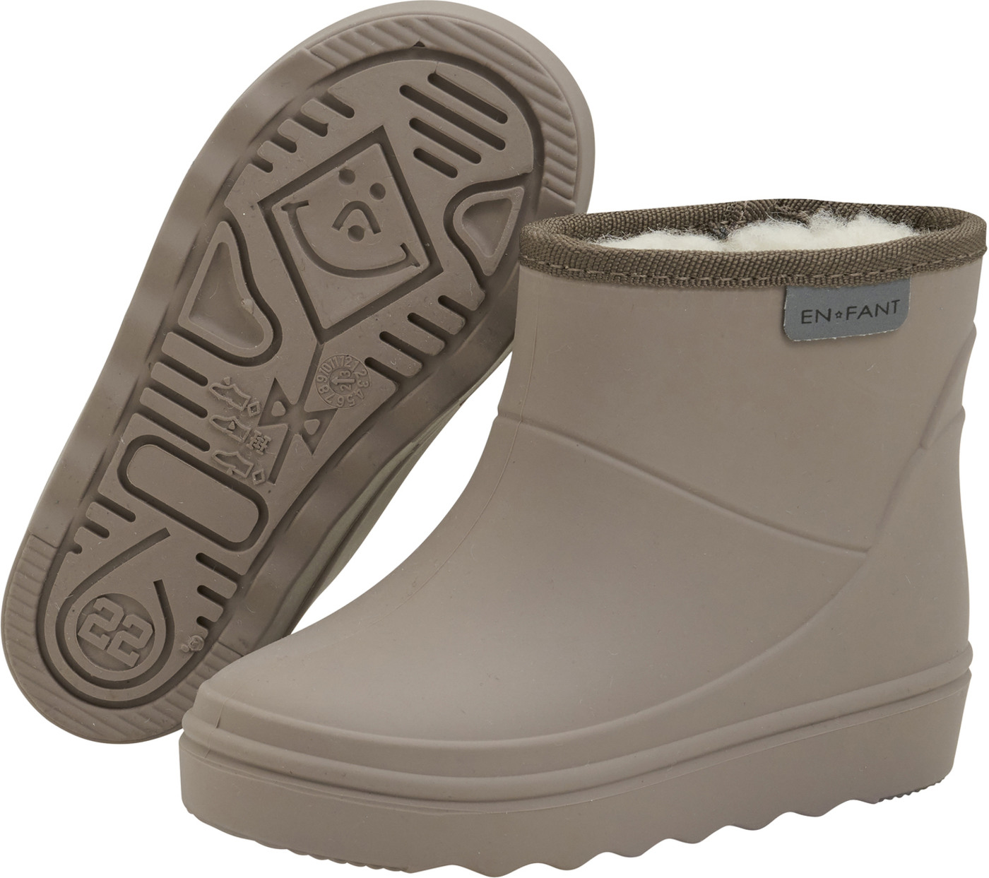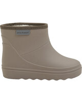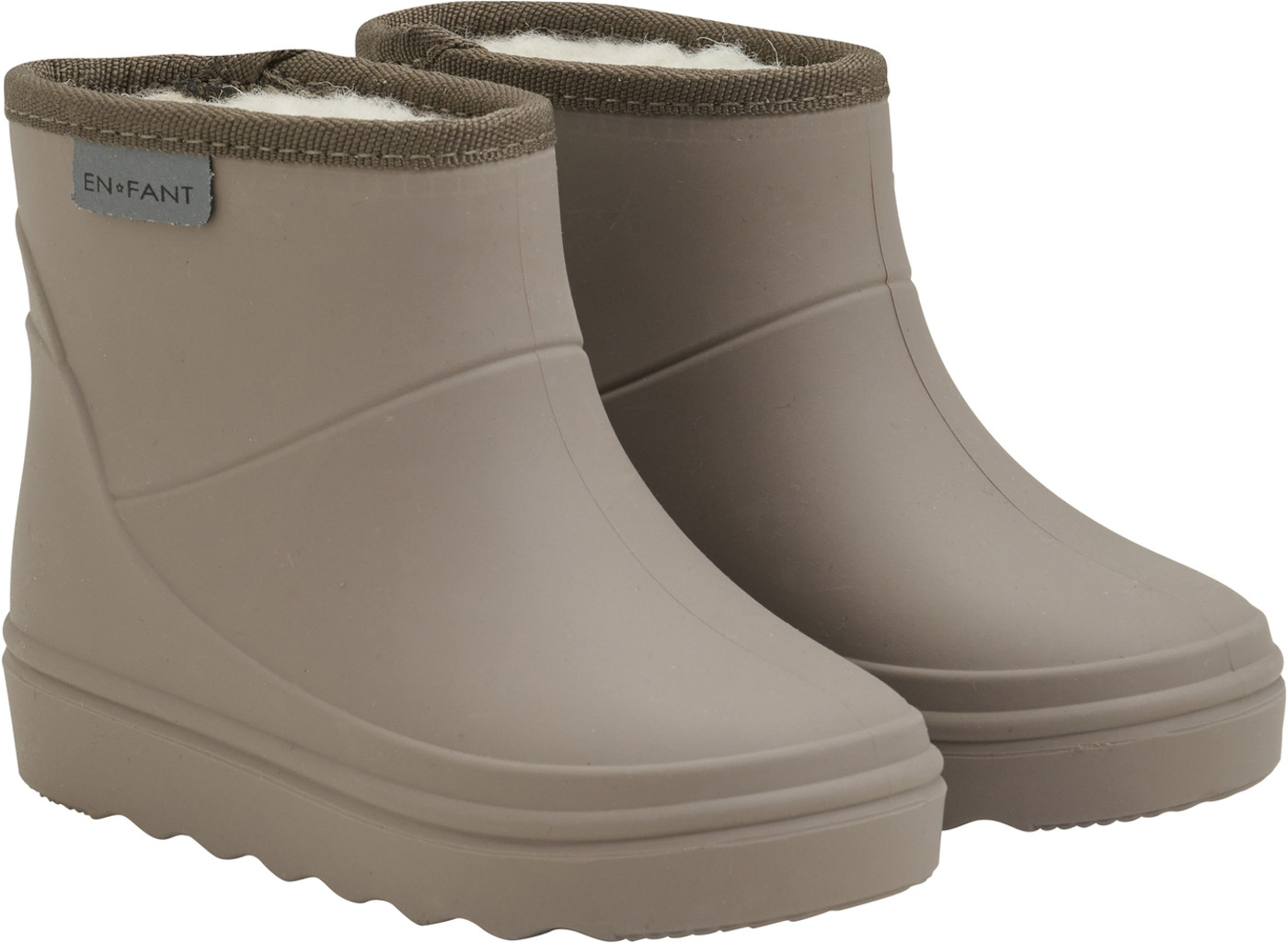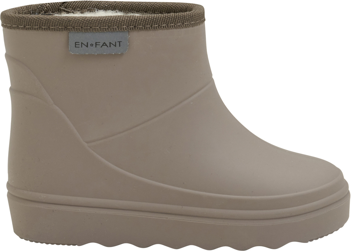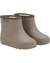 Einfarbige warme Thermo-Stiefel von En Fant. Der Stiefel hat oben das En Fant-Logo aufgenäht. Der Stiefel ist mit einer Wollmischung gefüttert, die zusammen mit der Aluminiummembran in der Sohle dazu beiträgt, die Füße warm zu halten. Die Thermostiefel sind aus dem leichten Gummi Megol geformt. Megol ist strapazierfähig und bietet dem Kind gleichzeitig gute Bewegungsfreiheit.