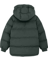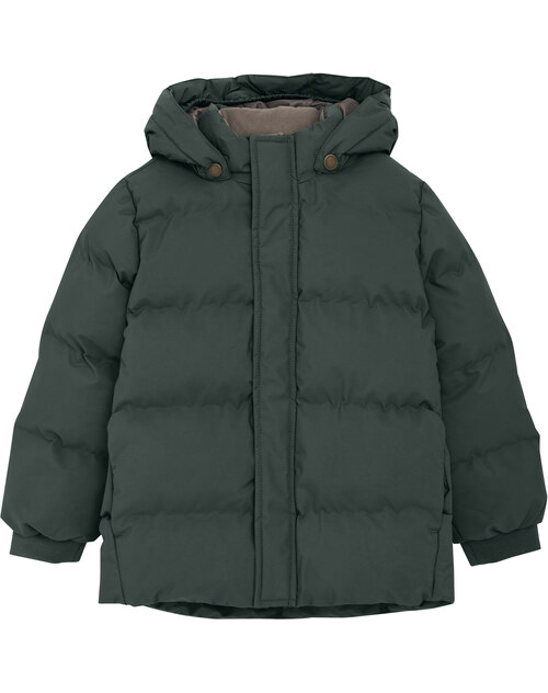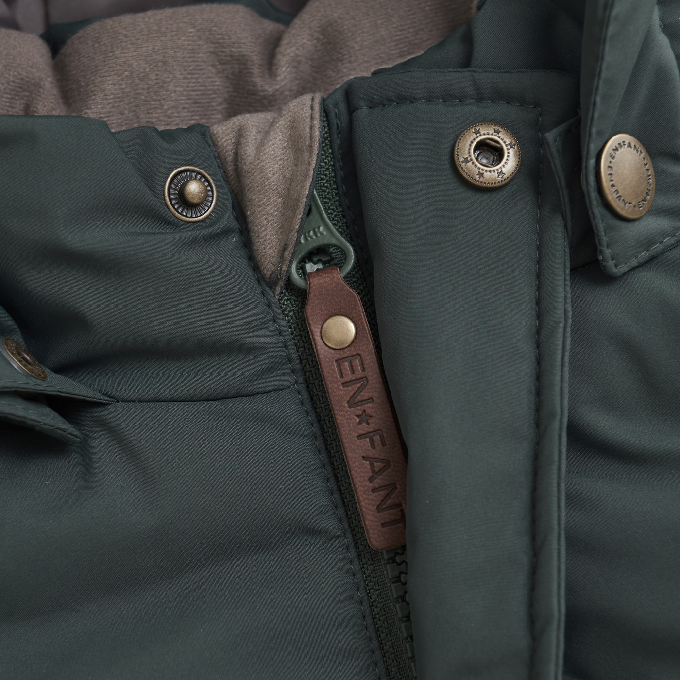 Warme, strapazierfähige Steppjacke für Ihr Kind von EN FANT. Das Material ist atmungsaktiv, wind- und wasserdicht, sodass Ihr Kind bei Regen, Schnee und Wind unterwegs sein kann, ohne zu frieren und nass zu werden. Geprüfter Wassersäulendruck von 10.000 mm. und einer Atmungsaktivität von 3.000 g. Die Jacke wird vorne mit einem hochwertigen Reißverschluss geschlossen. Der Kinnschutz sorgt dafür, dass die Reißverschlüsse unter dem Kinn nicht stören. Die Jacke hat eine abnehmbare Kapuze und einen Kordelzug an den Ärmelrändern. Im Inneren befindet sich ein Namensschild und ein weiches Futter.