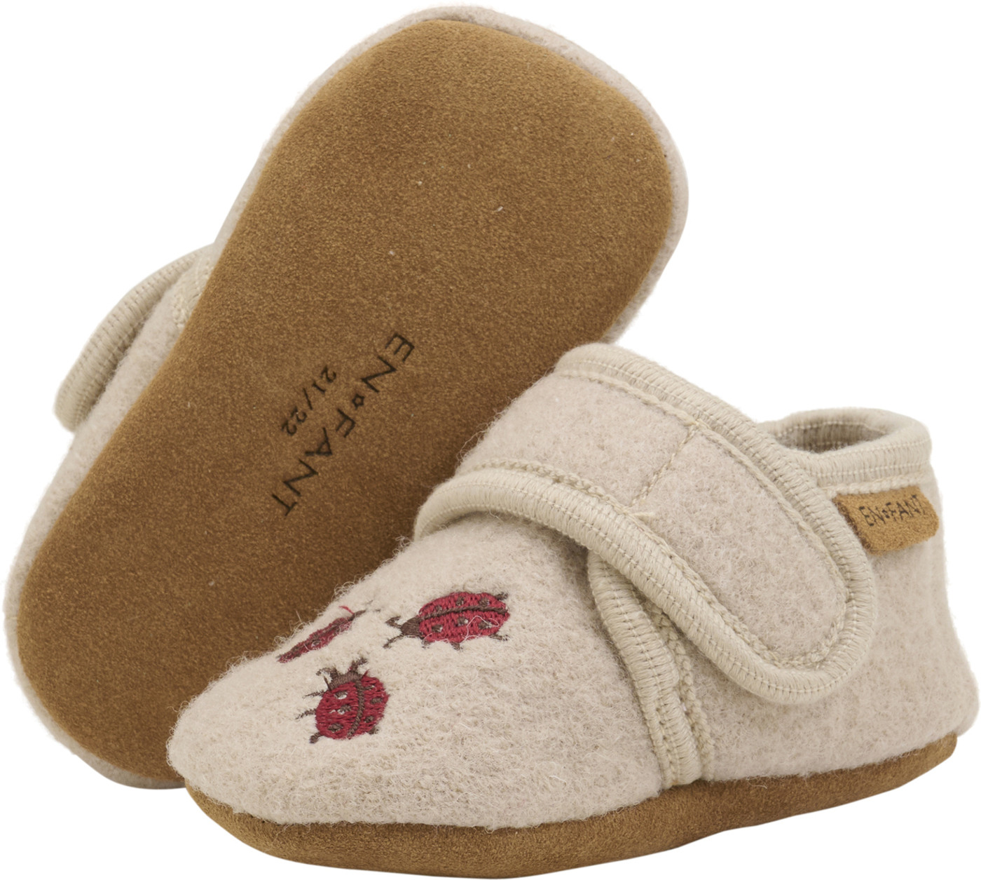 Diese Woll-Pantoffeln von EN FANT passen sich optimal den Füßen an und halten die Füße warm. Die Hausschuhe sind weich und bequem und lassen sich per Klettverschluß leicht An-und Ausziehen. Die Schuhe mit hübschem Motiv sehen nicht nur cool aus, sondern runden auch noch jedes Outfit ab. Perfekt für zu Hause, im Kindergarten oder in der Spielgruppe.