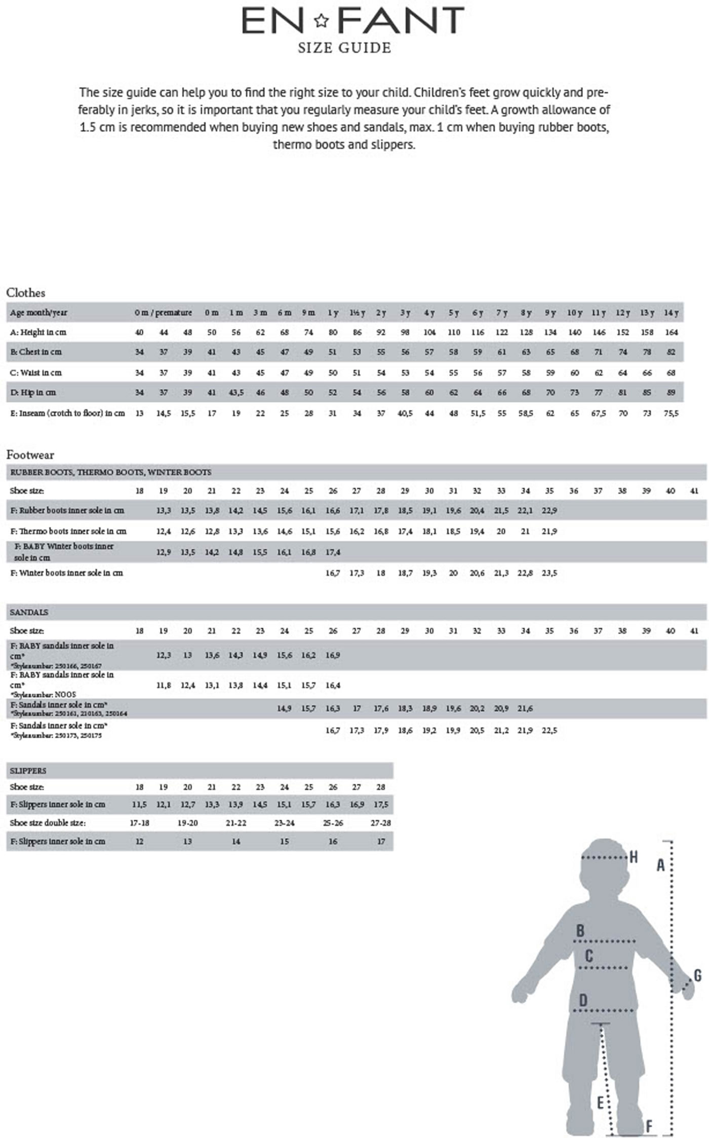 Bei En Fant Schuhen empfehlen wir grundsetzlich ein Größe größer als die übliche Schuhgröße zu wählen :)