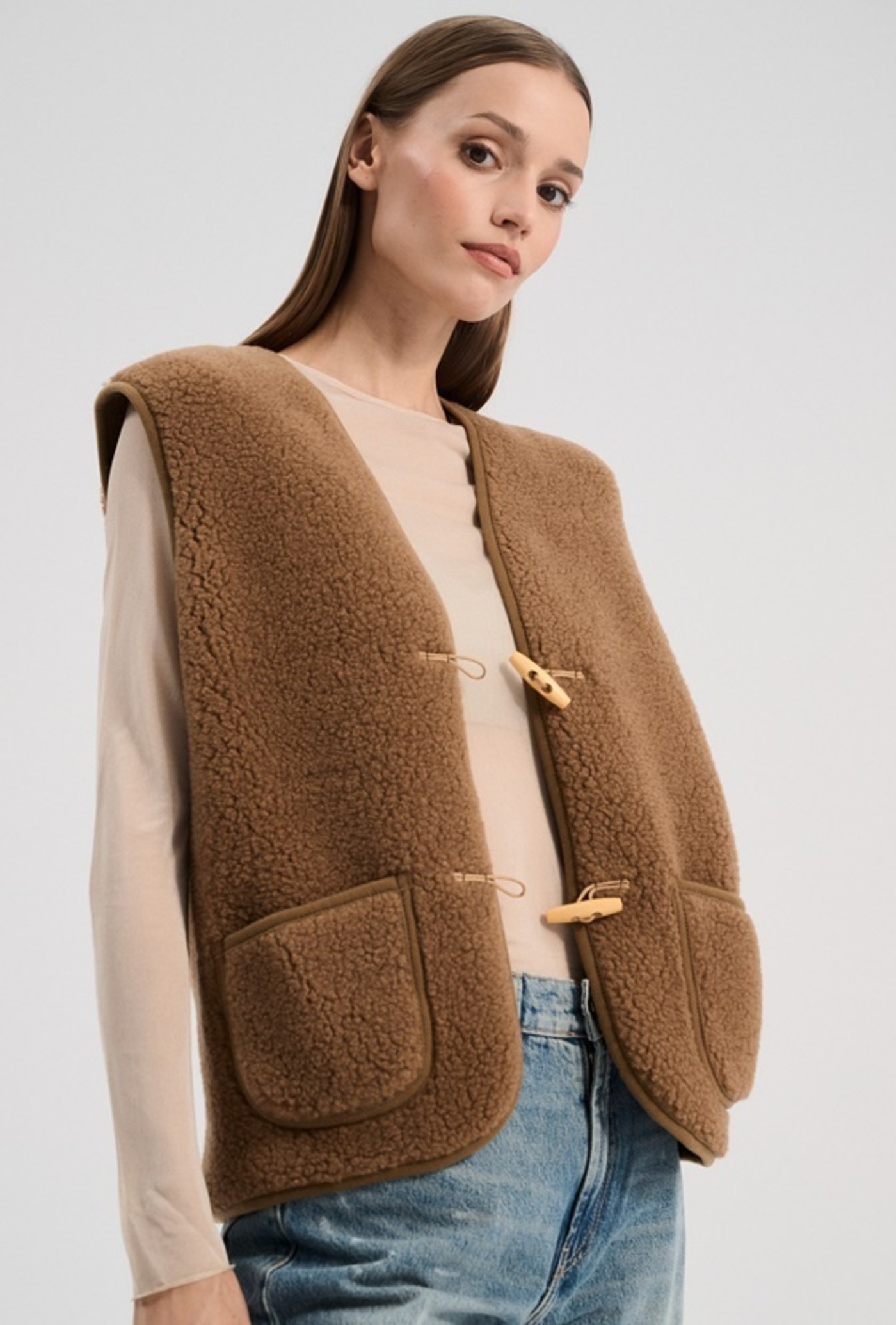 Alwero Women's wool vest - ALPEN ADULT - Teddy brown