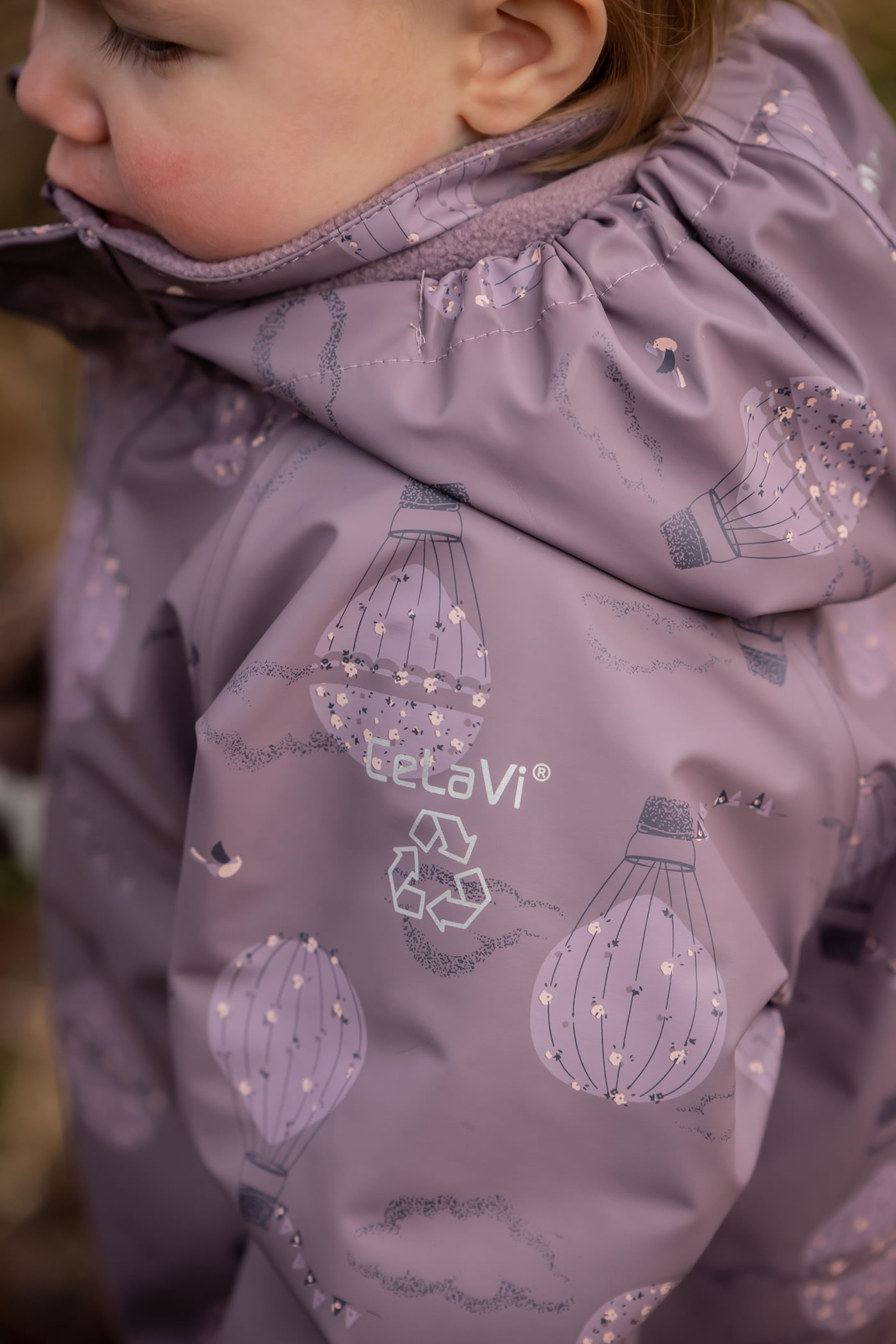 Not with this great PU rain jacket from CELAVI in a great shade of purple and with a pretty all-over balloon print.