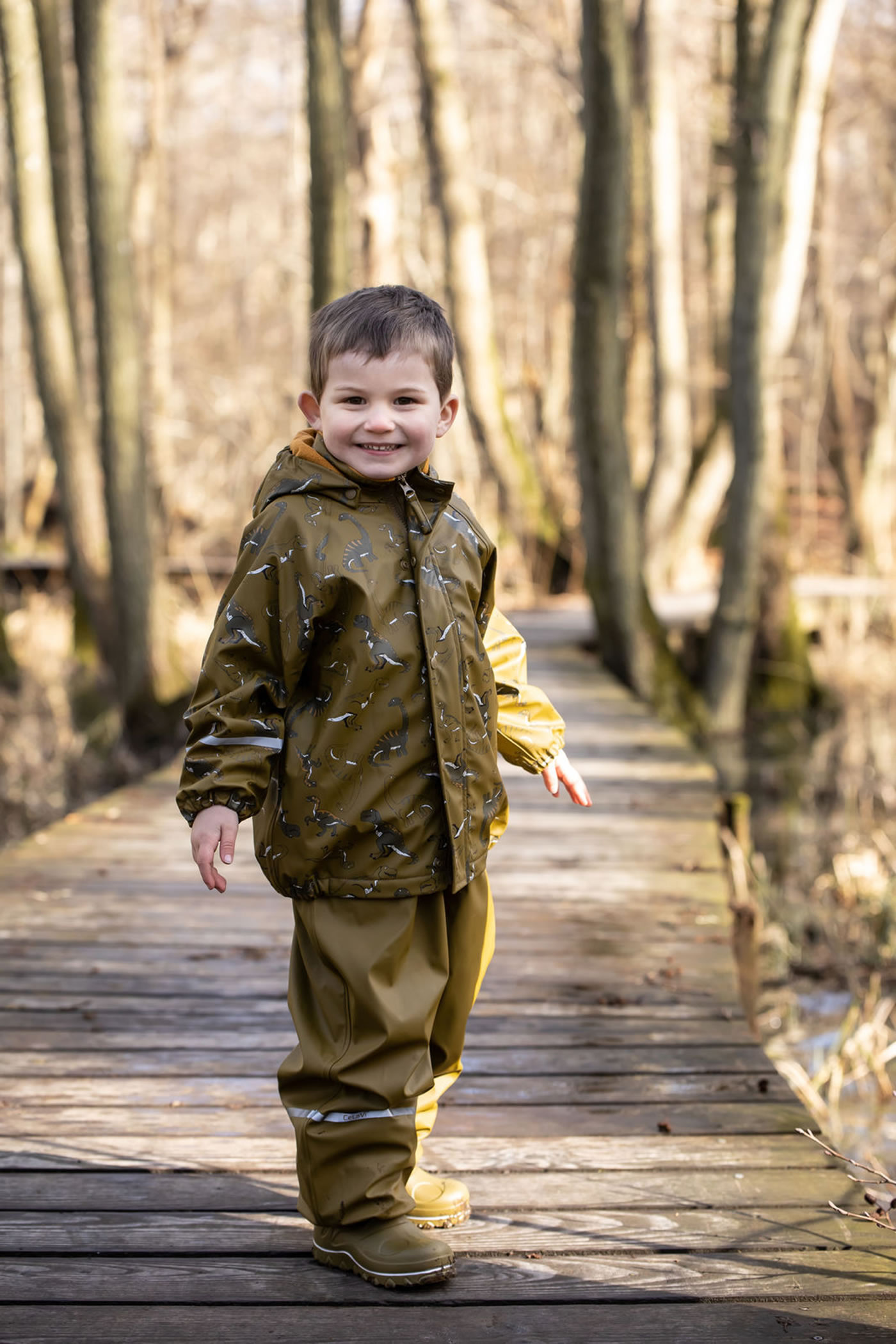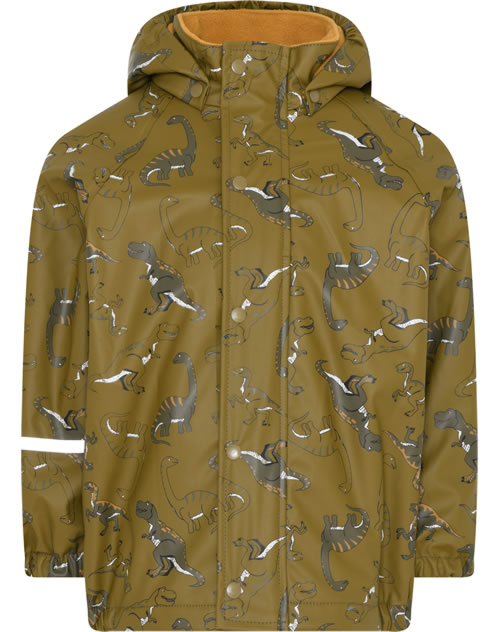Not with this great PU rain jacket from CELAVI in a great shade of brown and with a cool all-over dino print.