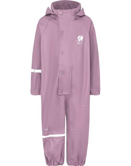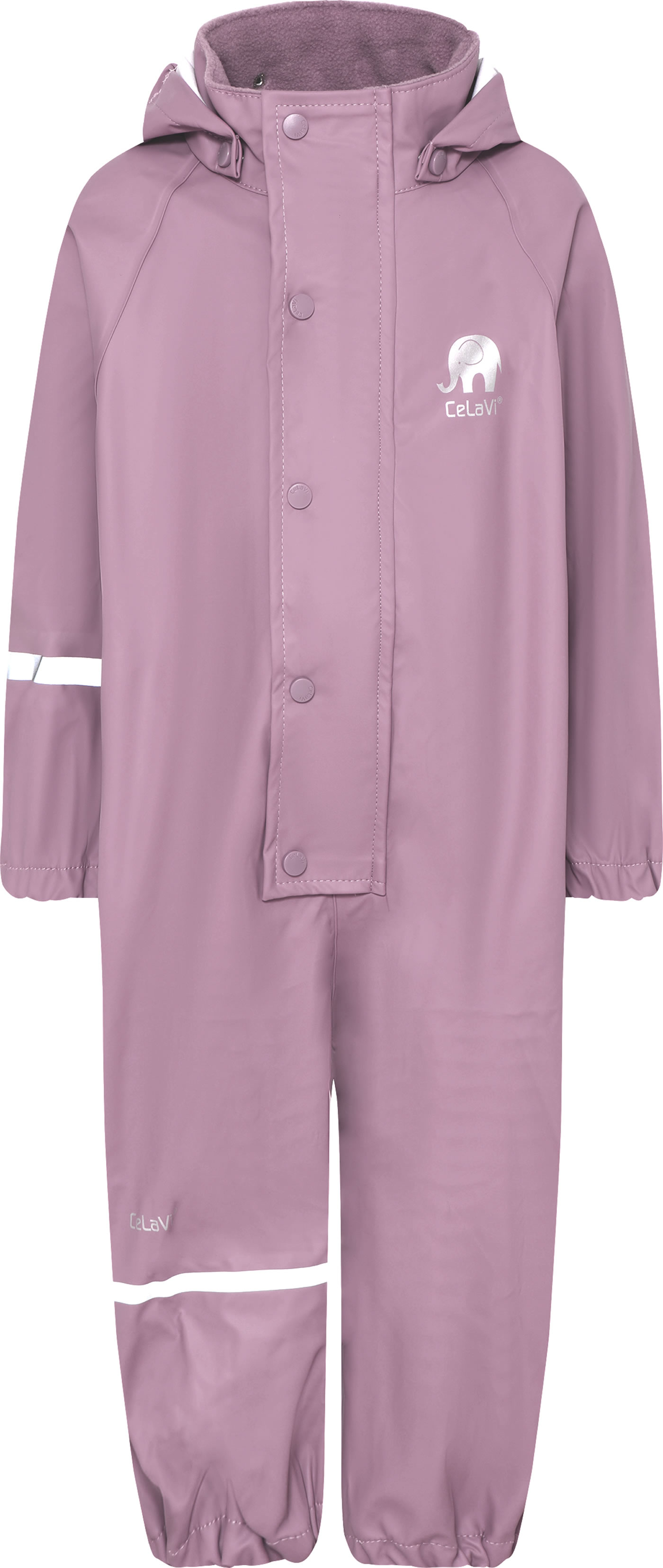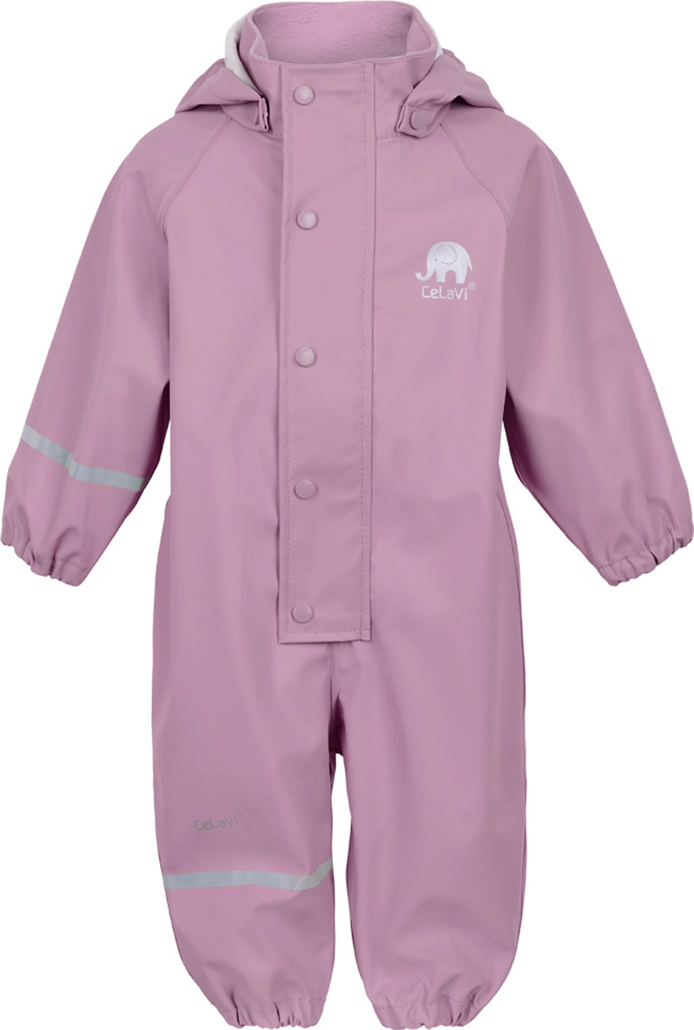 With this suit by CELAVI with a detachable hood, your child is protected against water and wind. The sleeves are provided with a rubber band. An elastic rubber band and an adjustable bar prevent the legs from sliding up. Reflective stripes provide security on cloudy days and in the dark. The overall is equipped with soft fleece in the neck area. Waterproof and windproof 5000 mm water column Reflectors Welded seams No harmful ingredients Material: shell 100% polyester; coating polyurethane Washable at 40 °C Total length approx. 72 cm; Inside leg length approx. 24 cm (size 80)