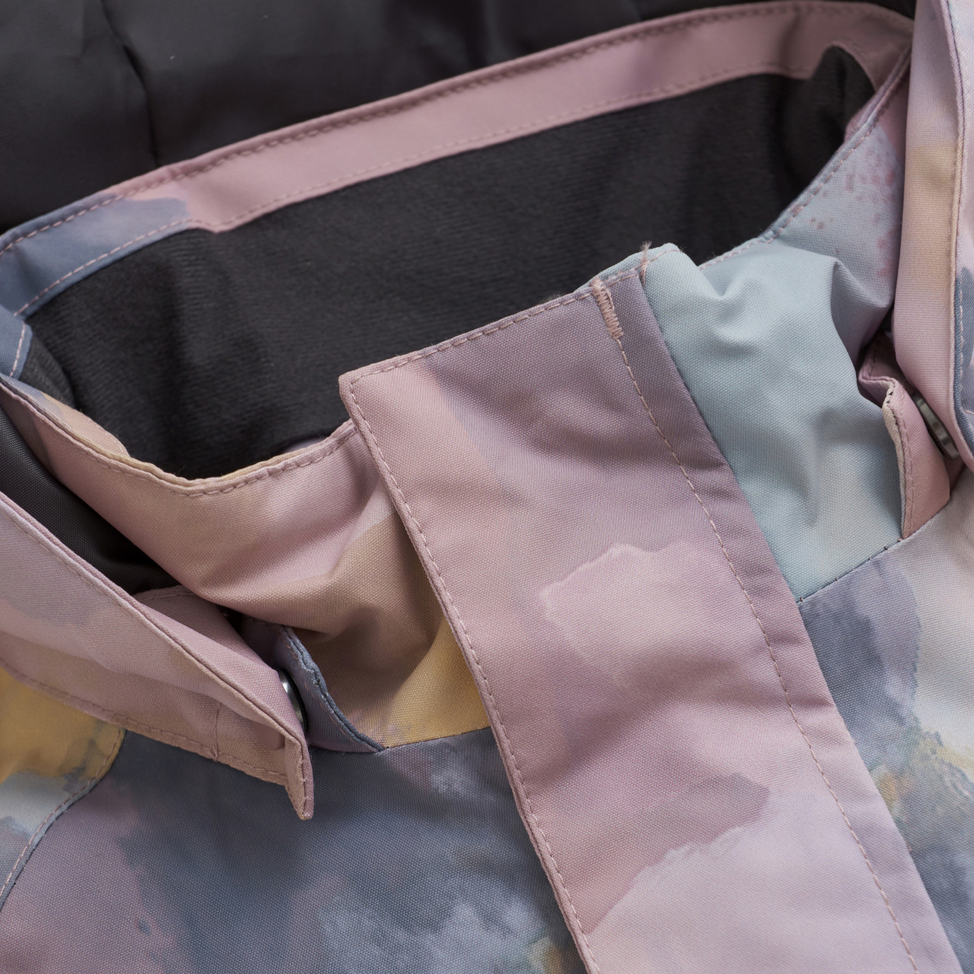 The snow pants close with a zipper and snap button at the front and have an adjustable waistband with an elastic drawcord.