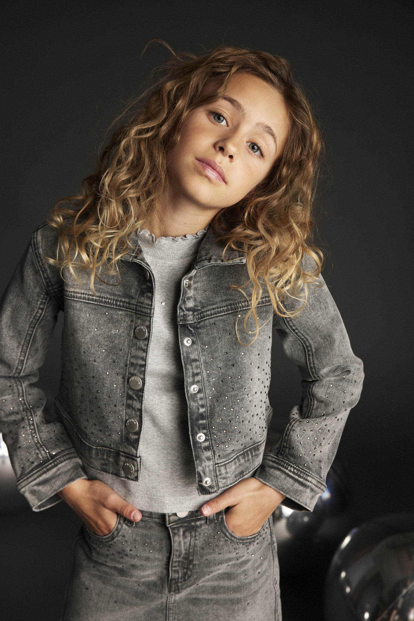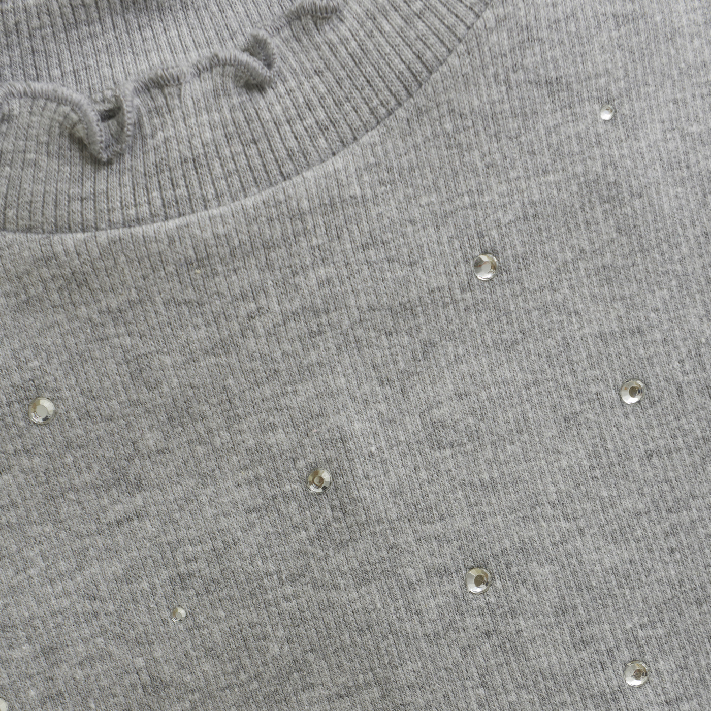 Creamie Long-Sleeve-Shirt made of cotton with rhinestones - Light Grey Melange