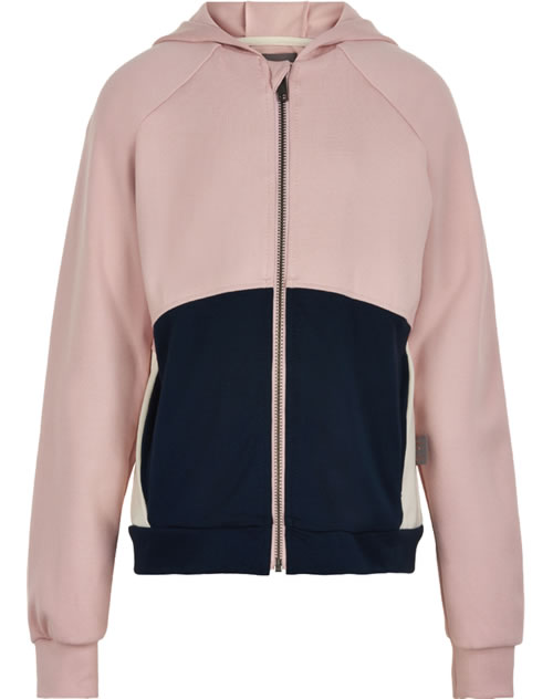 Sweat jacket with hood for girls by CREAMIE. The jacket is closed with a zipper and two front pockets offer space for small items. The pattern in three colors is particularly beautiful. The soft material ensures a high level of comfort.