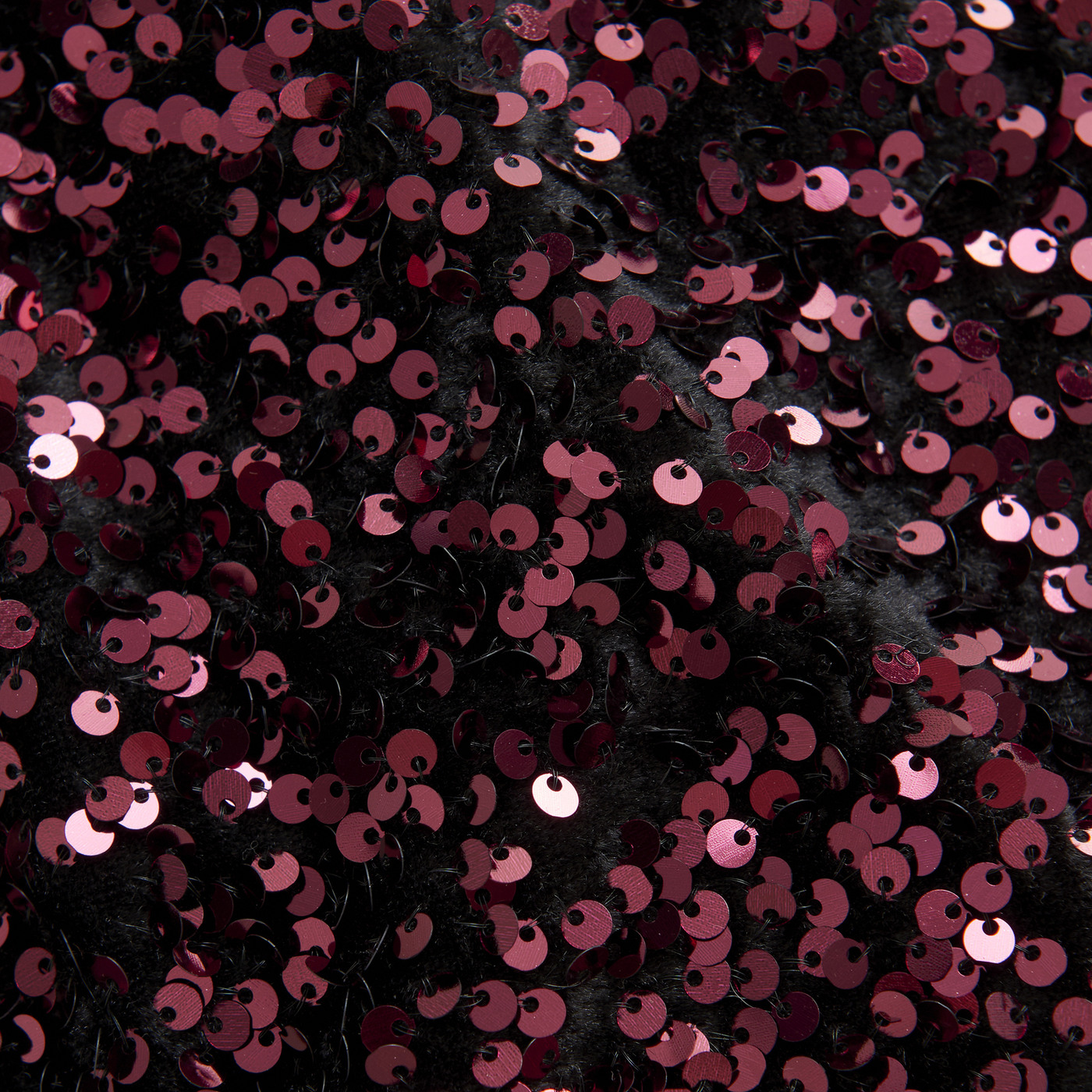 The velour fabric and the elastic waistband are black, while the sequins are wine red.