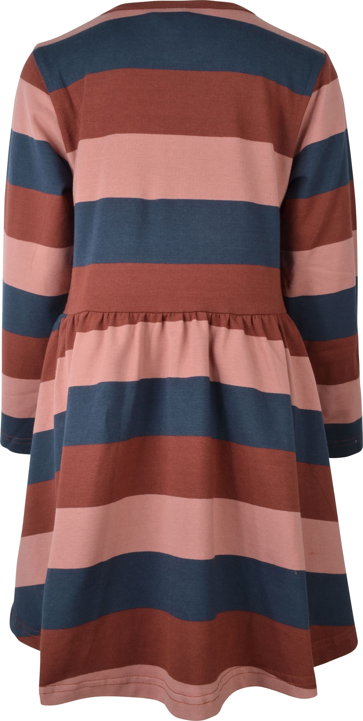 Pretty jersey dress in a colorful striped design with long sleeves by DANEFAE. A nice detail is the gold glittering swan on the front. The dress can be perfectly combined with tights or leggings.