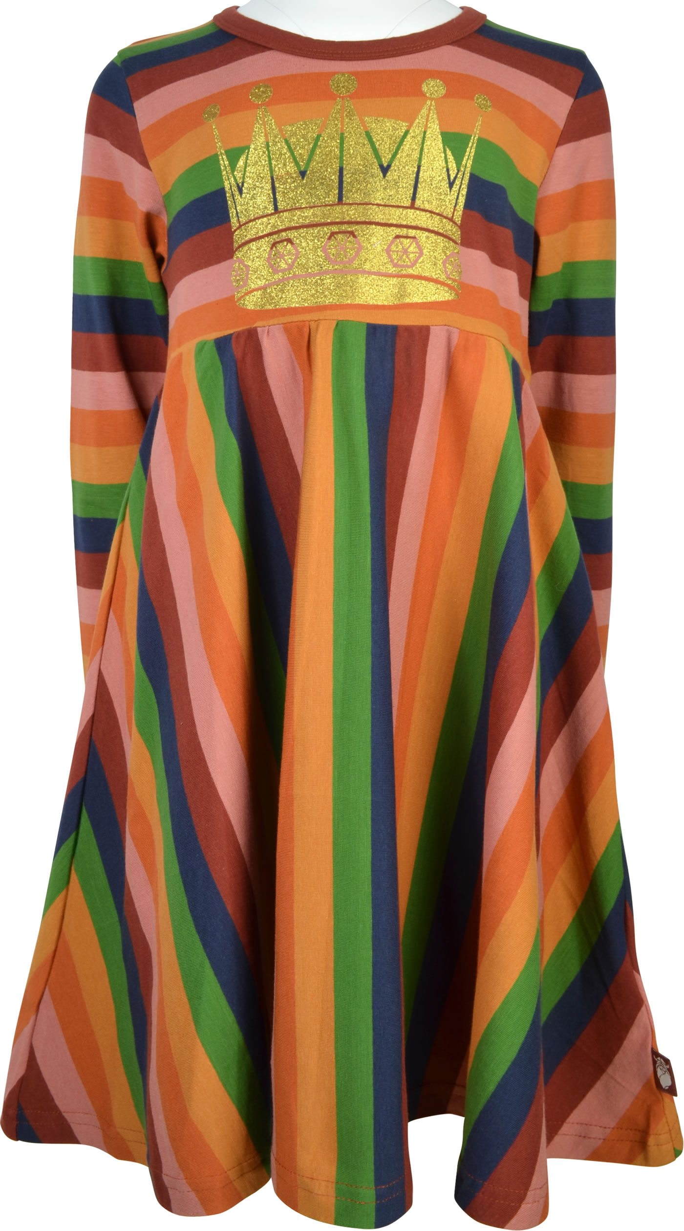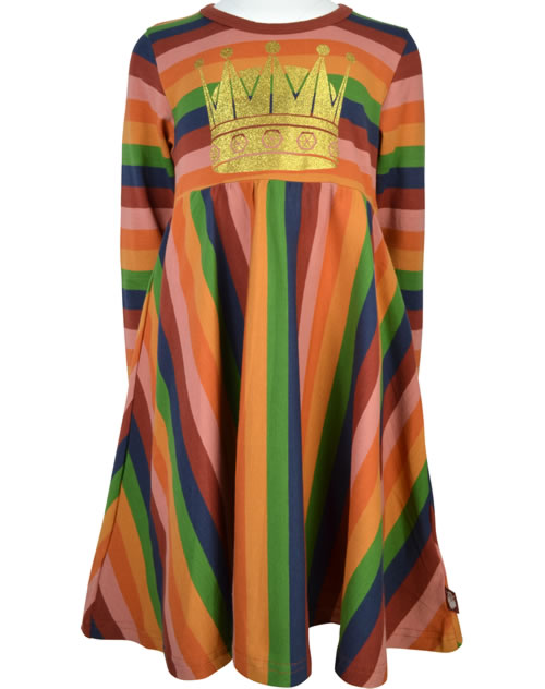 Striped jersey dress with long sleeves from DANEFAE. The dress has a wide cut and offers plenty of freedom of movement. A great eye-catcher is the golden crown with glitter on the front.