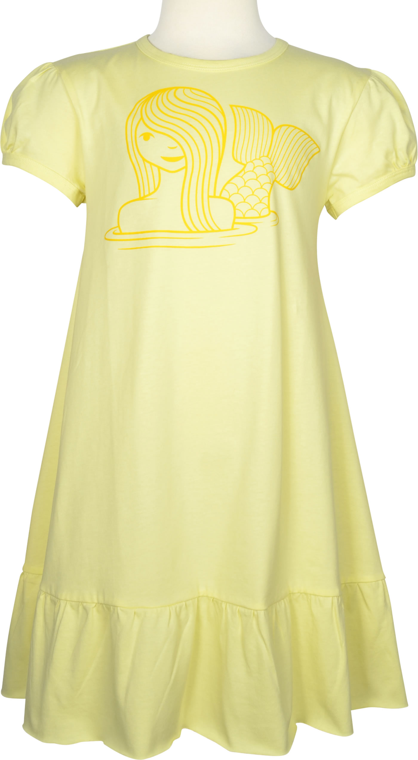 Pretty jersey dress VESTERBRO with short sleeves by DANEFAE. A mermaid enchants on the front. Another nice detail is the wide ruffle that gives the dress a feminine touch. The pleasant material offers a high level of comfort.