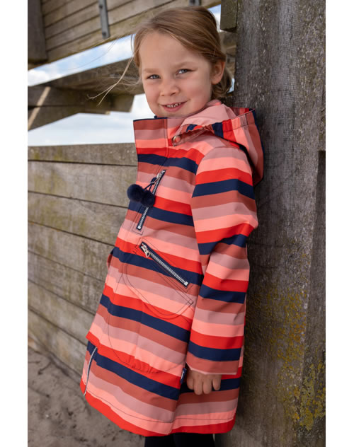 The all-weather jacket for girls by DANEFAE is the ideal companion for all outdoor activities. The hood is detachable. The bags offer plenty of space for small and large treasures. The breathable BIONIC-FINISH ECO impregnation is fluorine-free and makes it water and dirt-repellent. It is particularly light and the material ensures a high level of comfort. The tailored jacket has rubber cuffs on the sleeves that don't let in the wind. The jacket is closed with a zipper and additional Velcro strip.