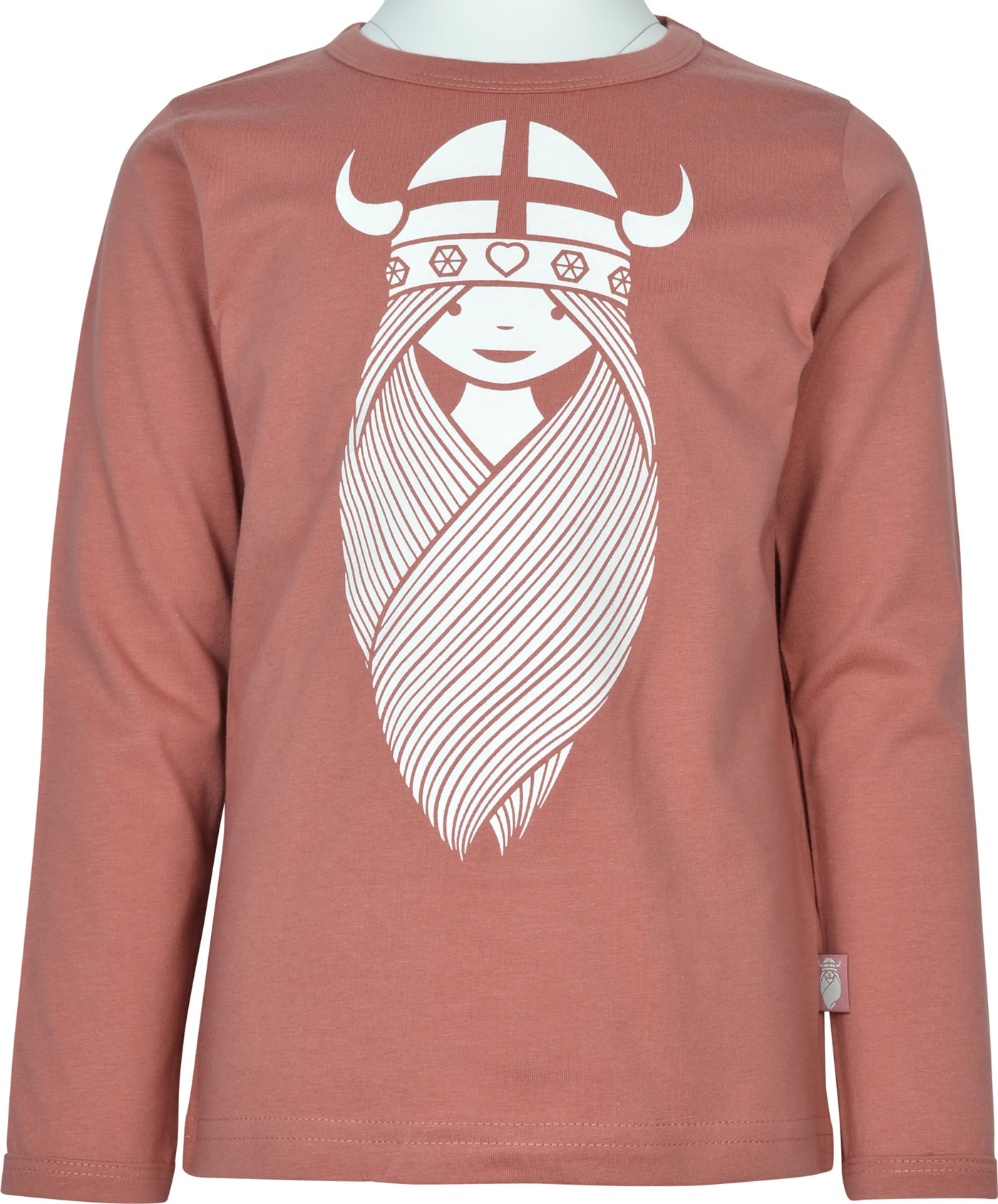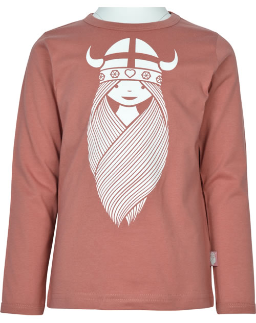 High-quality long-sleeved shirt in the color gray rose by DANEFAE for girls. A special eye-catcher is the Viking princess Freja on the front.