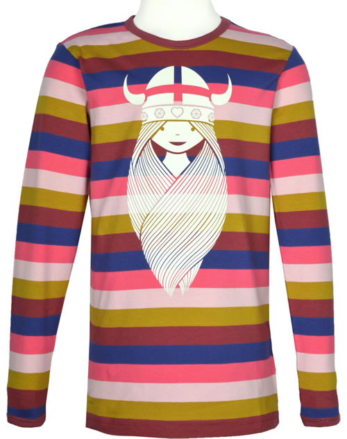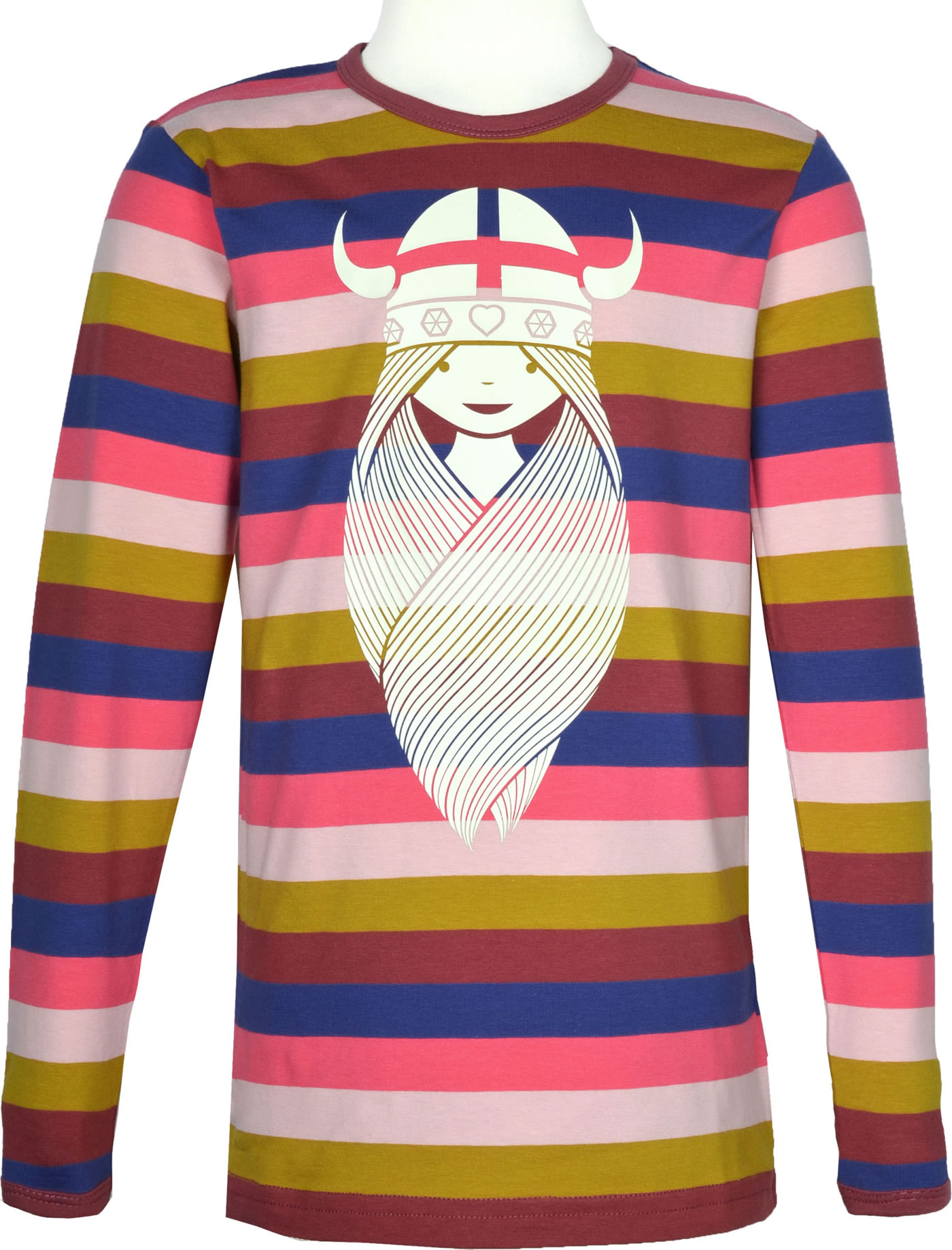 High-quality long-sleeved shirt with colorful stripes from DANEFAE. The Viking Princess Freja on the front attracts everyone's attention. The soft and elastic material ensures a high level of comfort.
