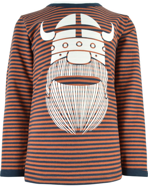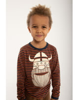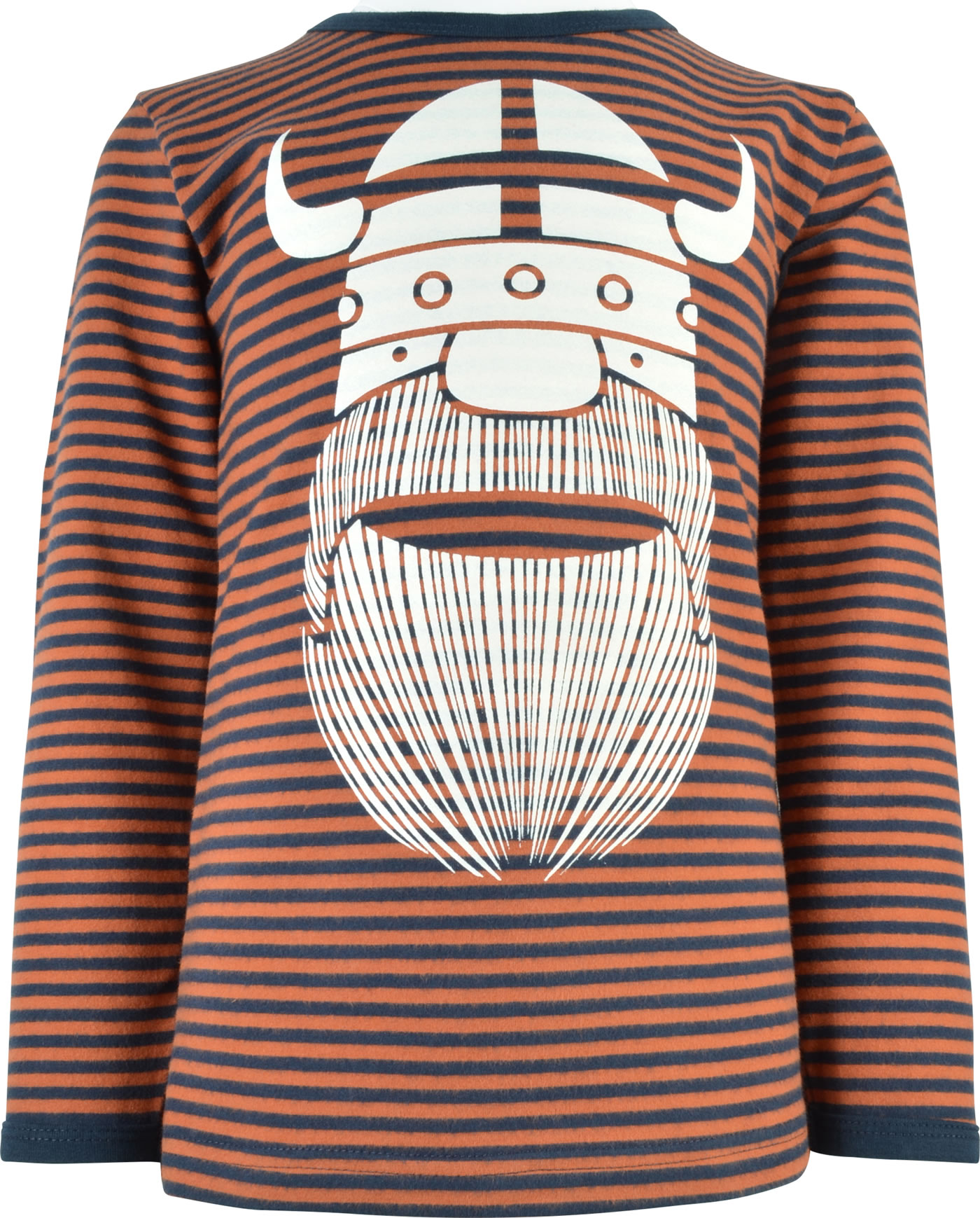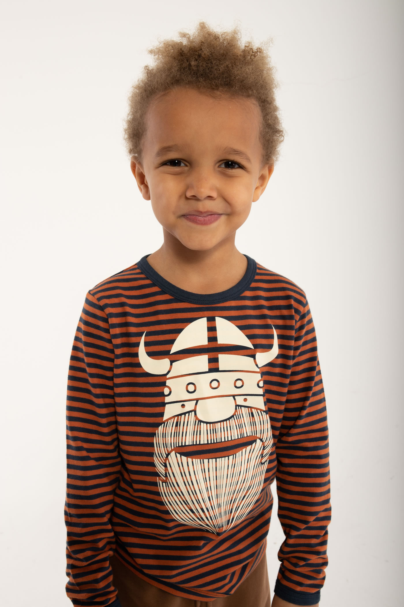 This great blue striped long-sleeved shirt by DANEFAE is a great companion for cool days. On the front of the shirt is the Viking Erik in white. The material is softly roughened and thus ensures a high level of comfort.