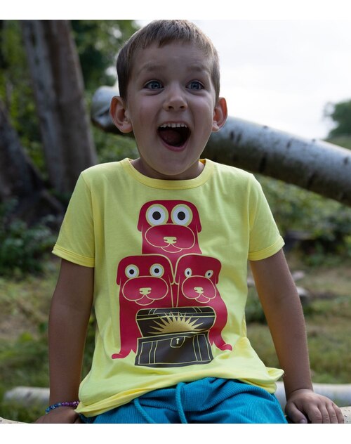 High-quality short-sleeved shirt in yellow with a great dog print by DANEFAE. The soft material ensures a high level of comfort.