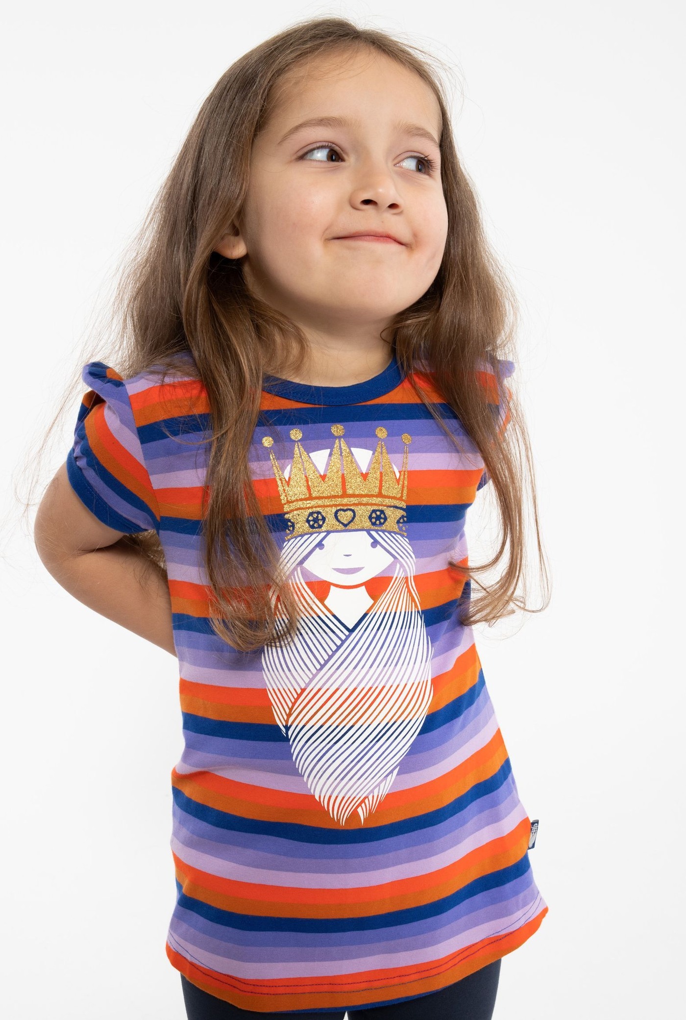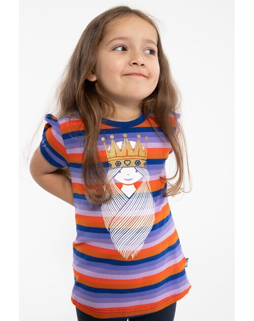 High-quality short-sleeved shirt in colorful stripes with a glittering Viking princess print by DANEFAE. The shirt is cut in a slight A-line. The soft material ensures a high level of comfort.