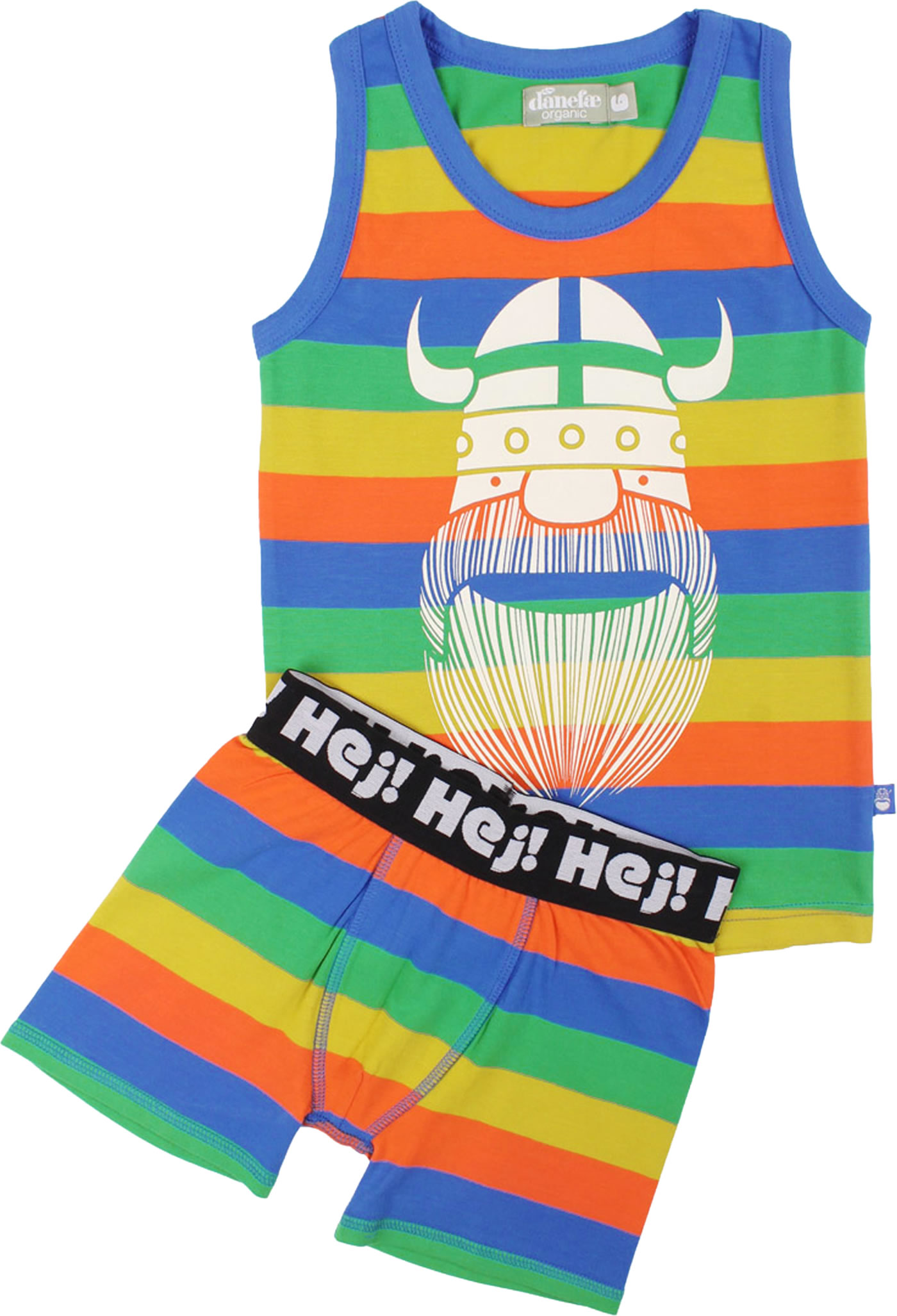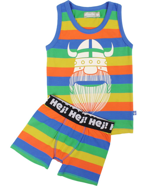 The underwear set by DANEFAE for boys consists of an undershirt, which can also be worn as a top, and boxer shorts. The undershirt has a great print with Viking Erik. The boxer shorts have a wide elastic band - so nothing can pinch.