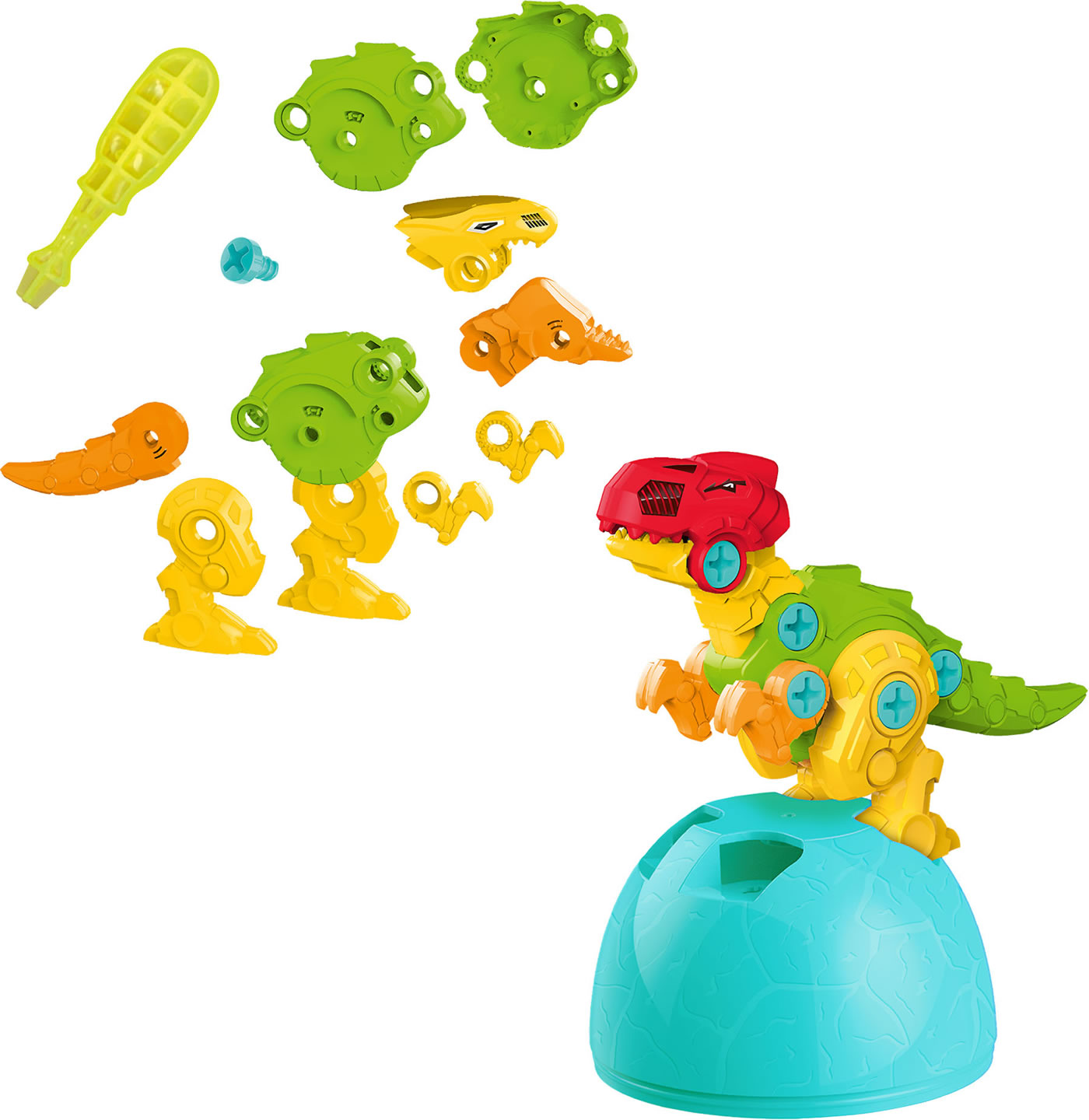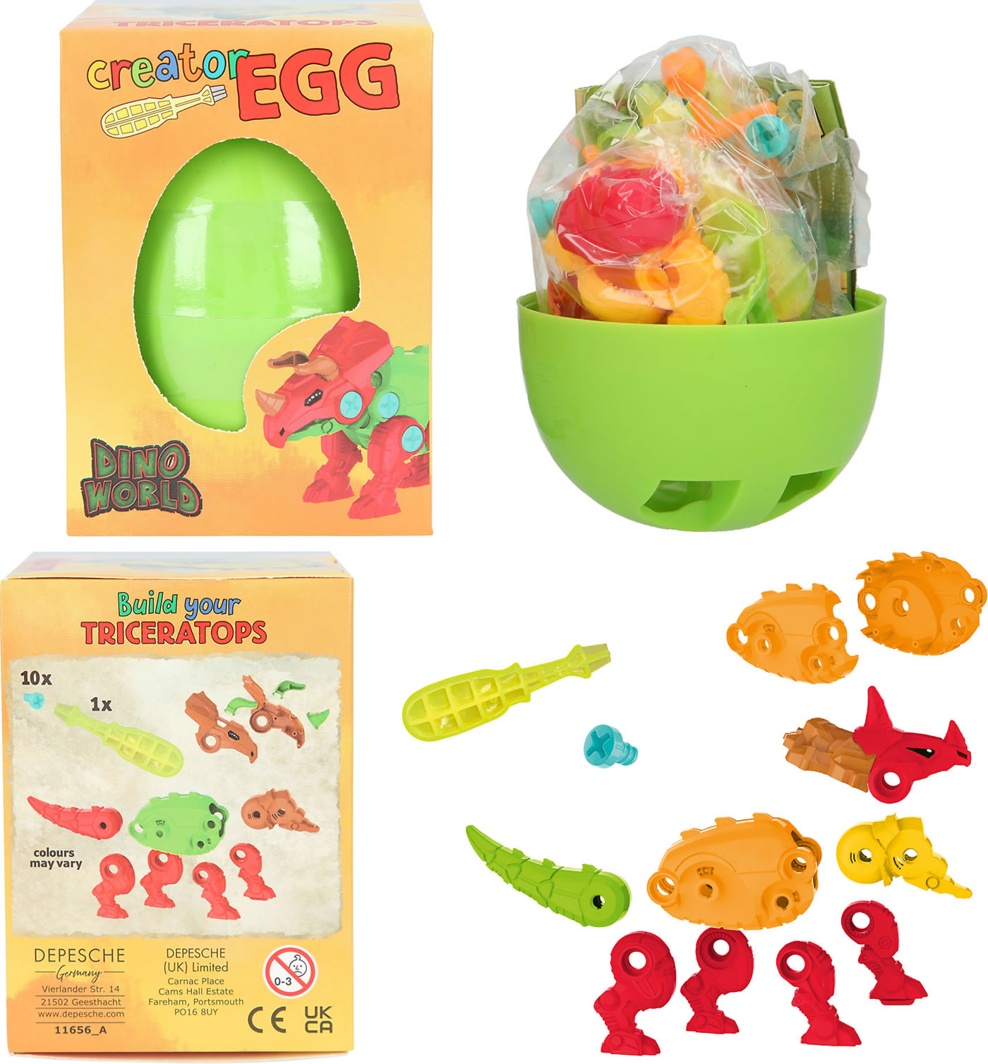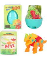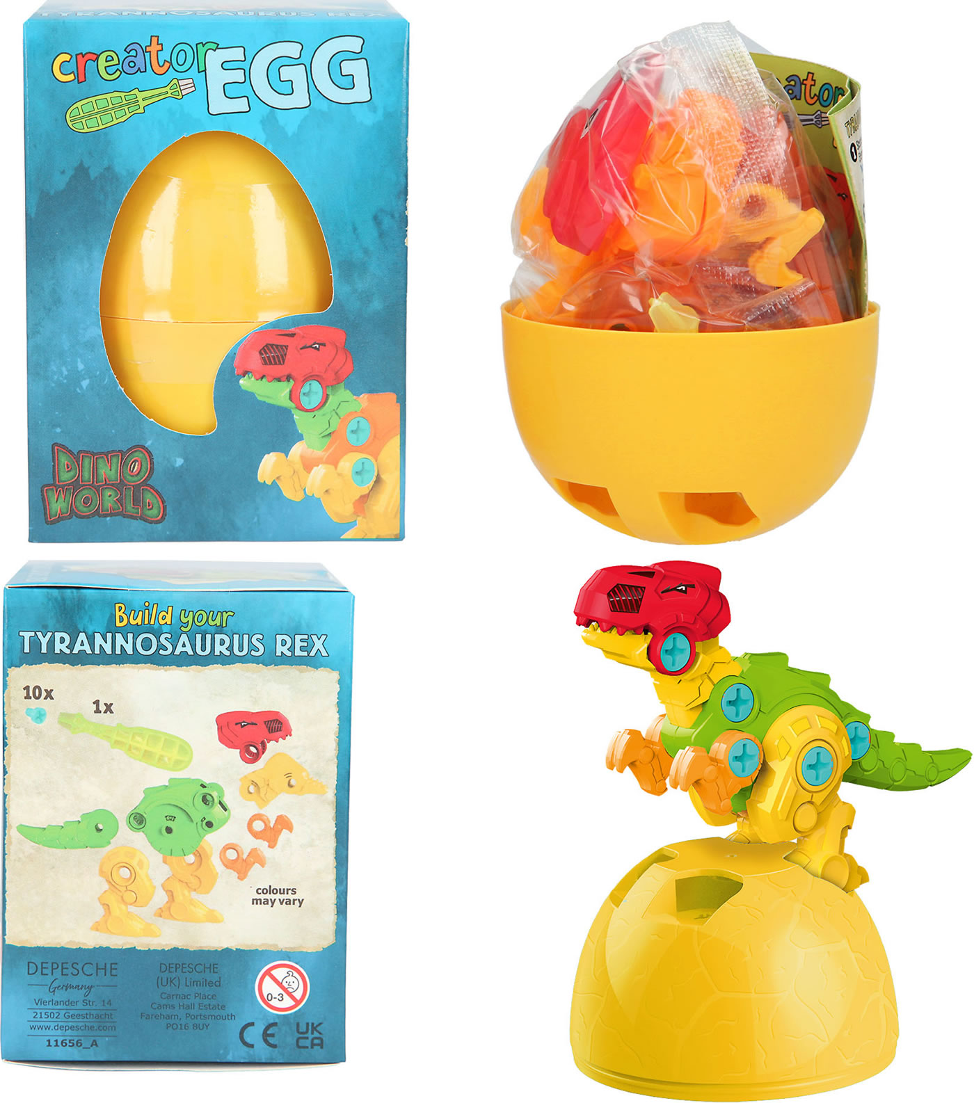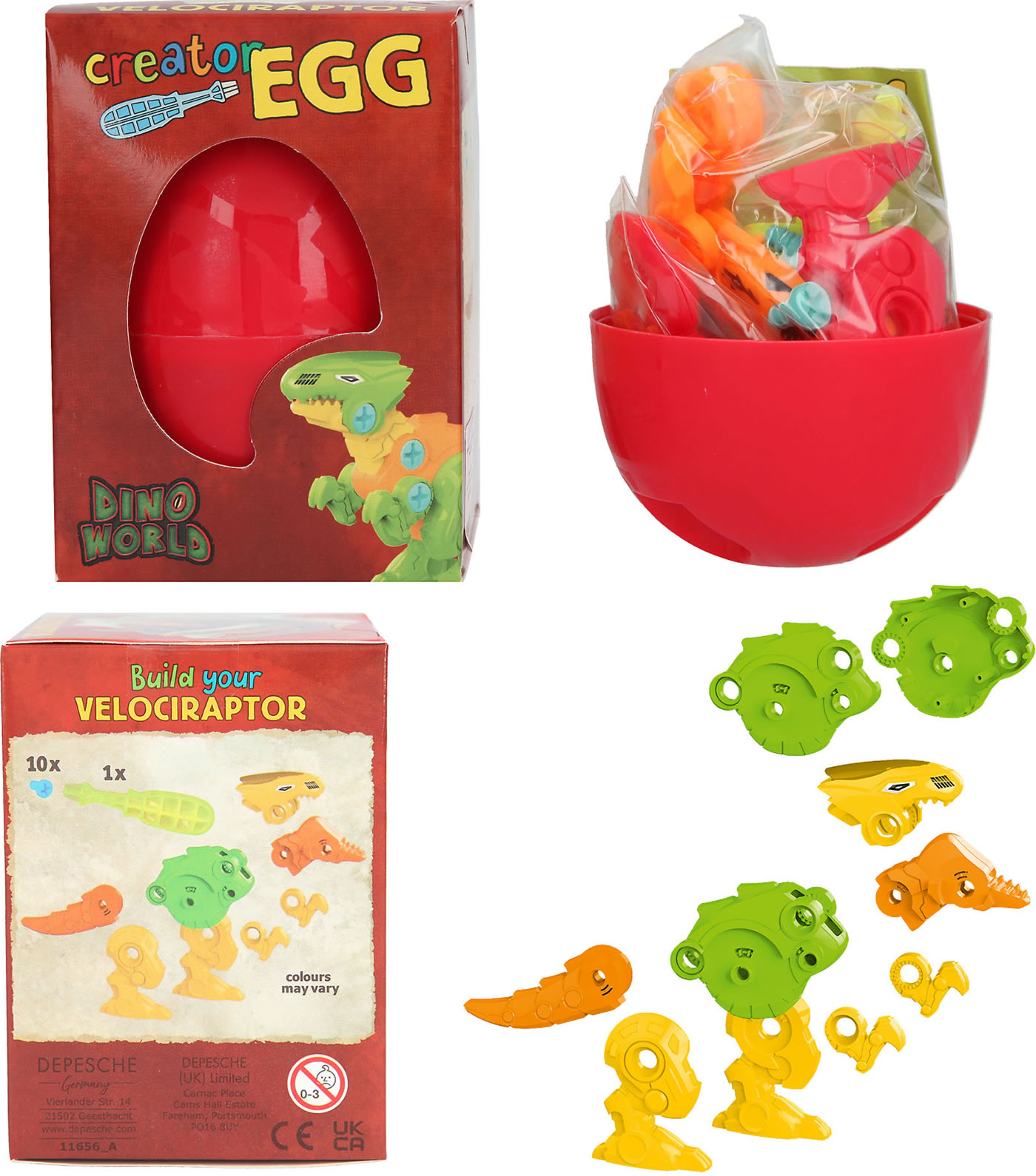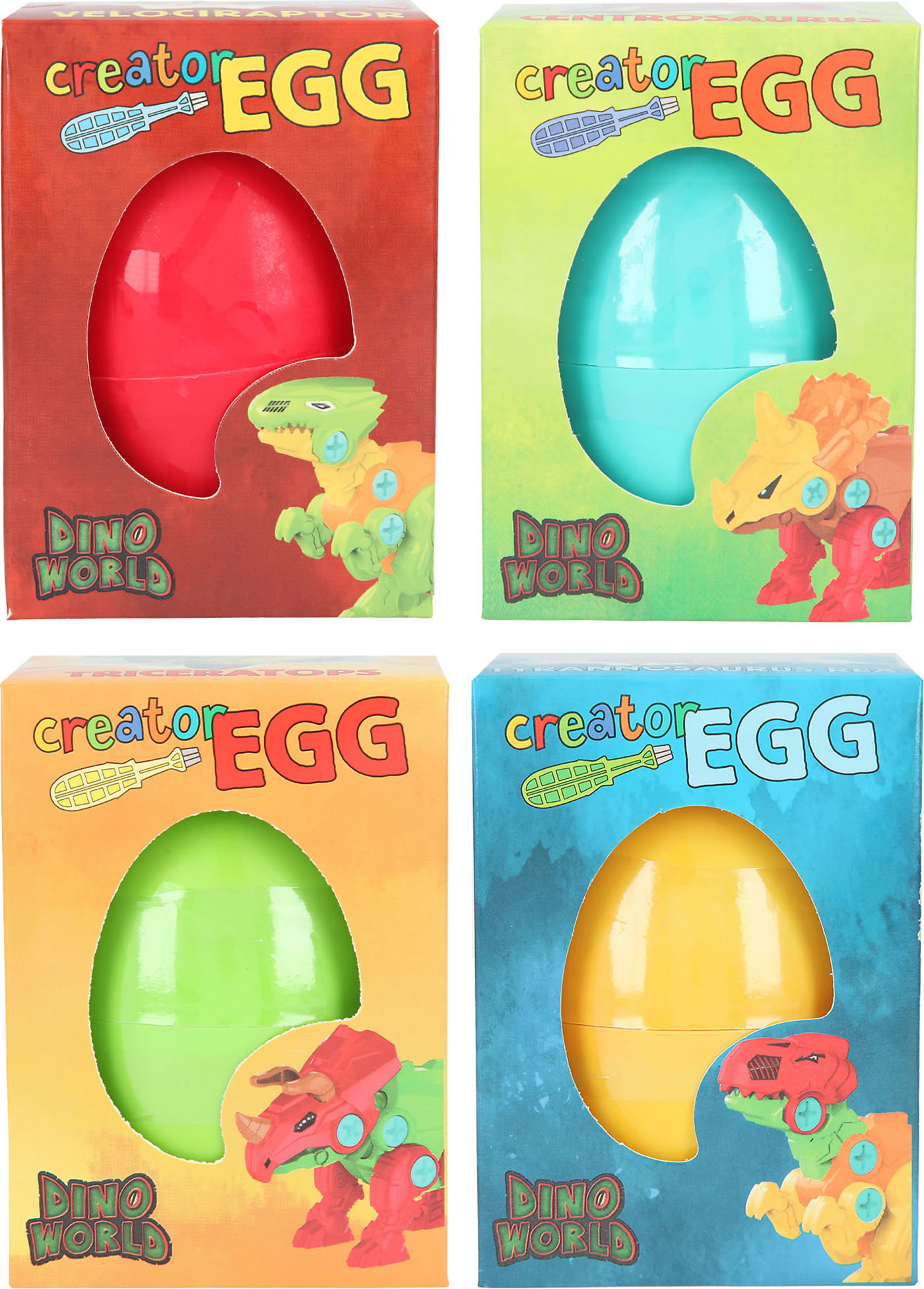 In the egg there are individual parts of a dinosaur. You can assemble them with screws and a screwdriver.