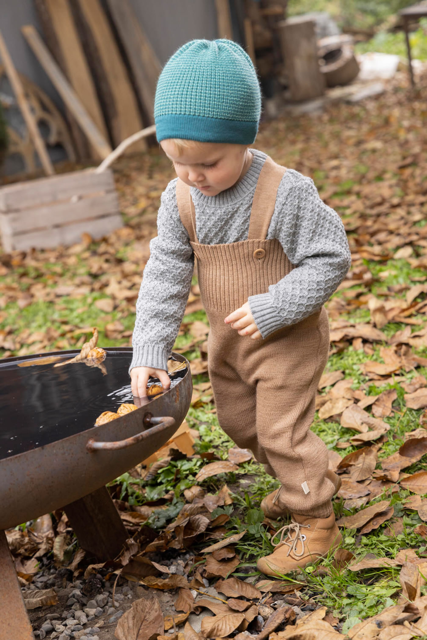 Hosen:Hosen und Trägerhosen aus Walkfallen normal aus. Die Trägerhosen aus Merinwolle fallen hingegen groß aus.