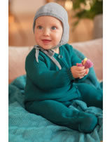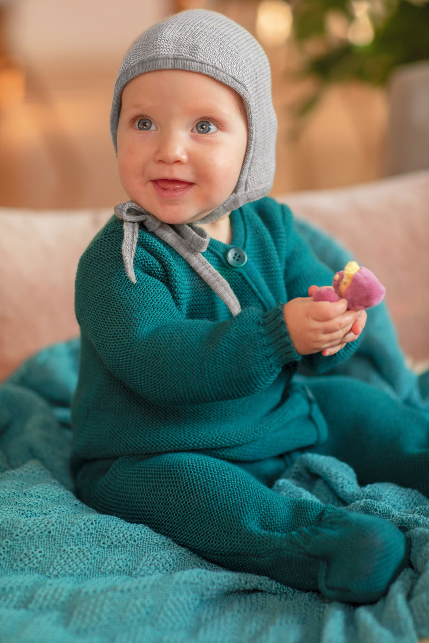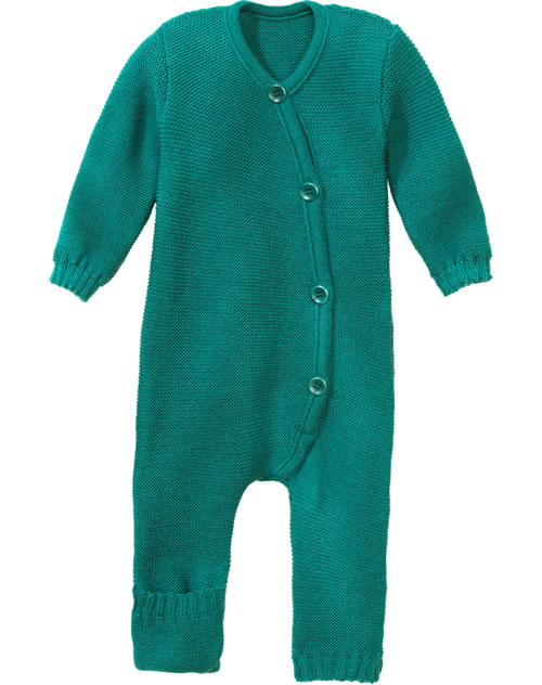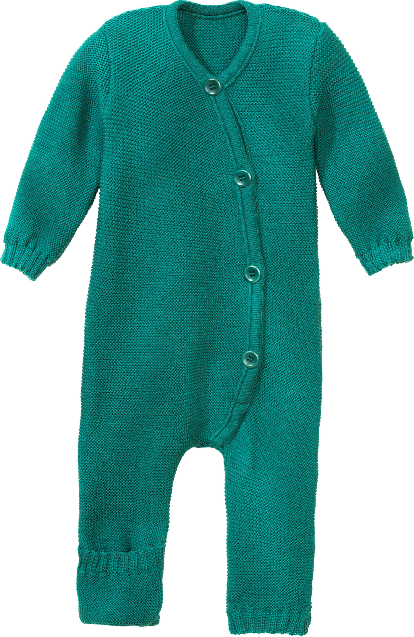 Knitted overall made of soft merino wool by DISANA for the little ones. Many loving details make this overall something special. The bar made of corozo buttons runs in a curve and thus helps with putting on and taking off. There are cuffs on the legs so that the feet stay nice and warm and the elastic left knit offers a lot of freedom of movement. The fine organic merino wool has moisture and temperature regulating properties and thus ensures cozy warmth. At the same time, it protects sensitive children's skin from any skin irritation.