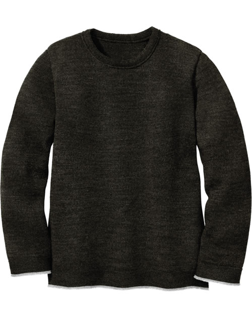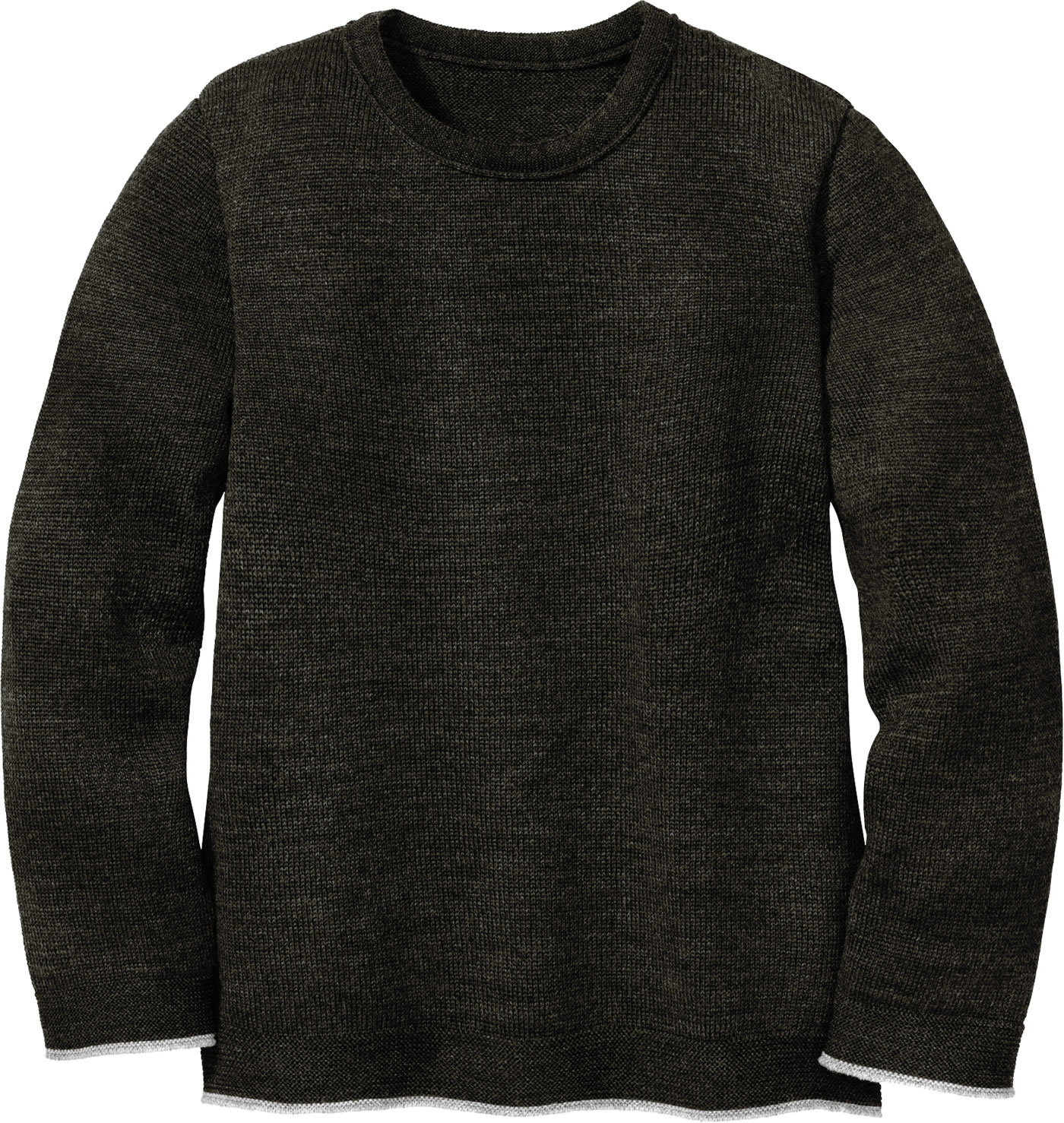 Classic knitted sweater made of fine merino wool with long sleeves and a round neckline by DISANA. The timeless design of the sweater offers many possible combinations and the contrasting colored edges on the sleeves and hem give it a special flair.