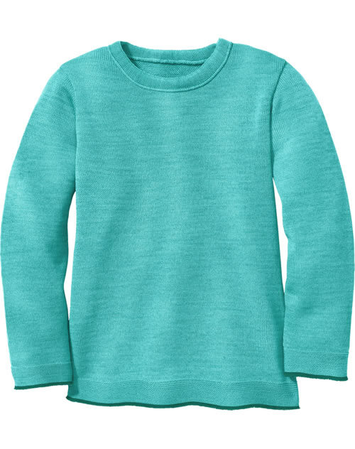 Classic knitted sweater made of fine merino wool with long sleeves and a round neckline by DISANA. The timeless design of the sweater offers many possible combinations and the contrasting colored edges on the sleeves and hem give it a special flair.