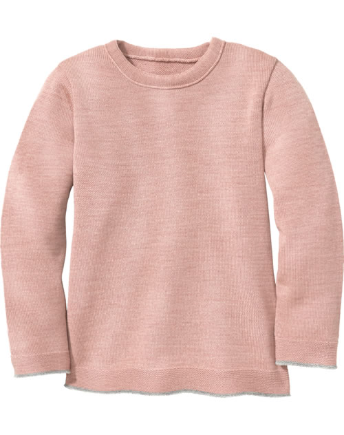 Classic knitted sweater made of fine merino wool with long sleeves and a round neckline by DISANA. The timeless design of the sweater offers many possible combinations and the contrasting colored edges on the sleeves and hem give it a special flair.