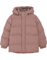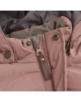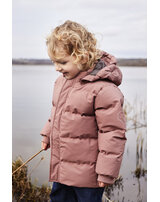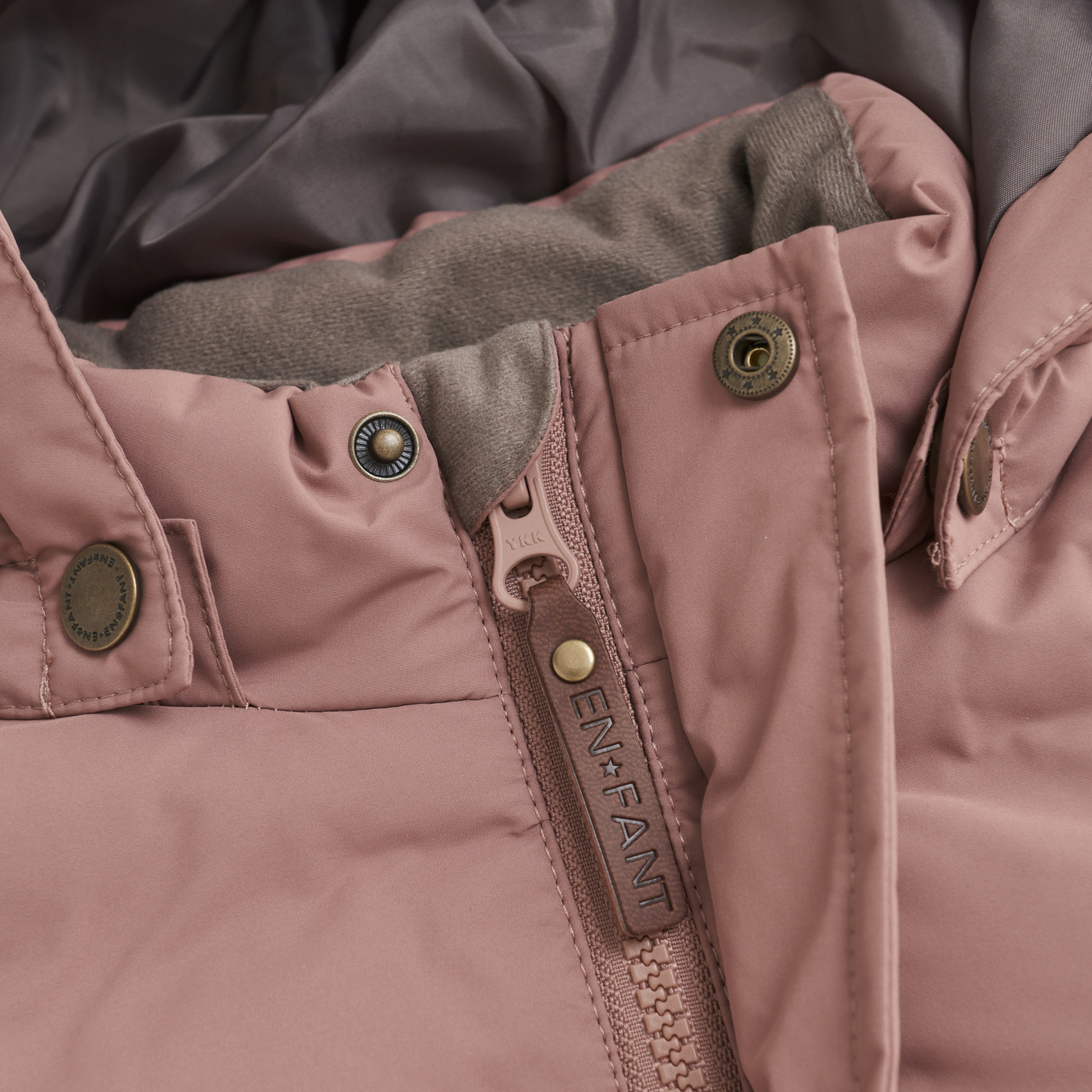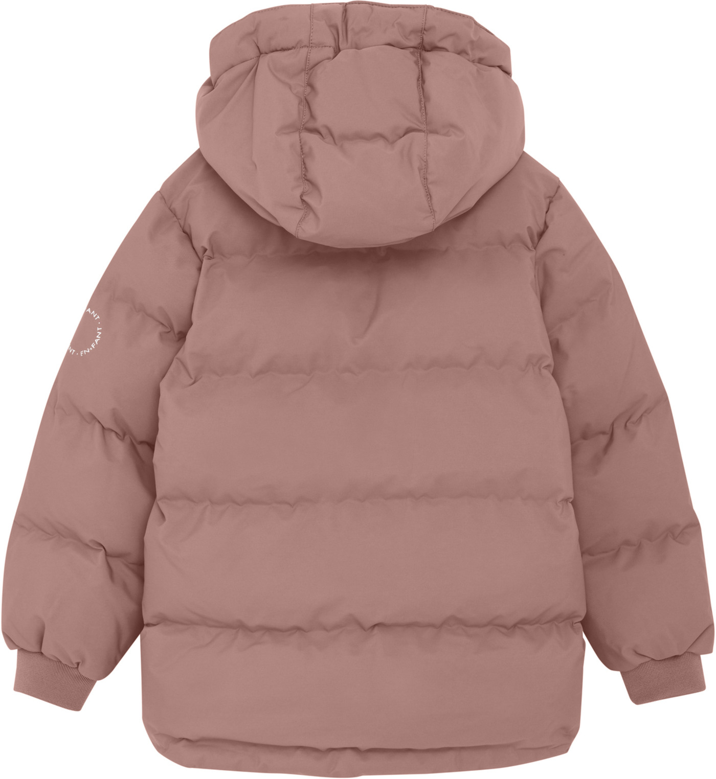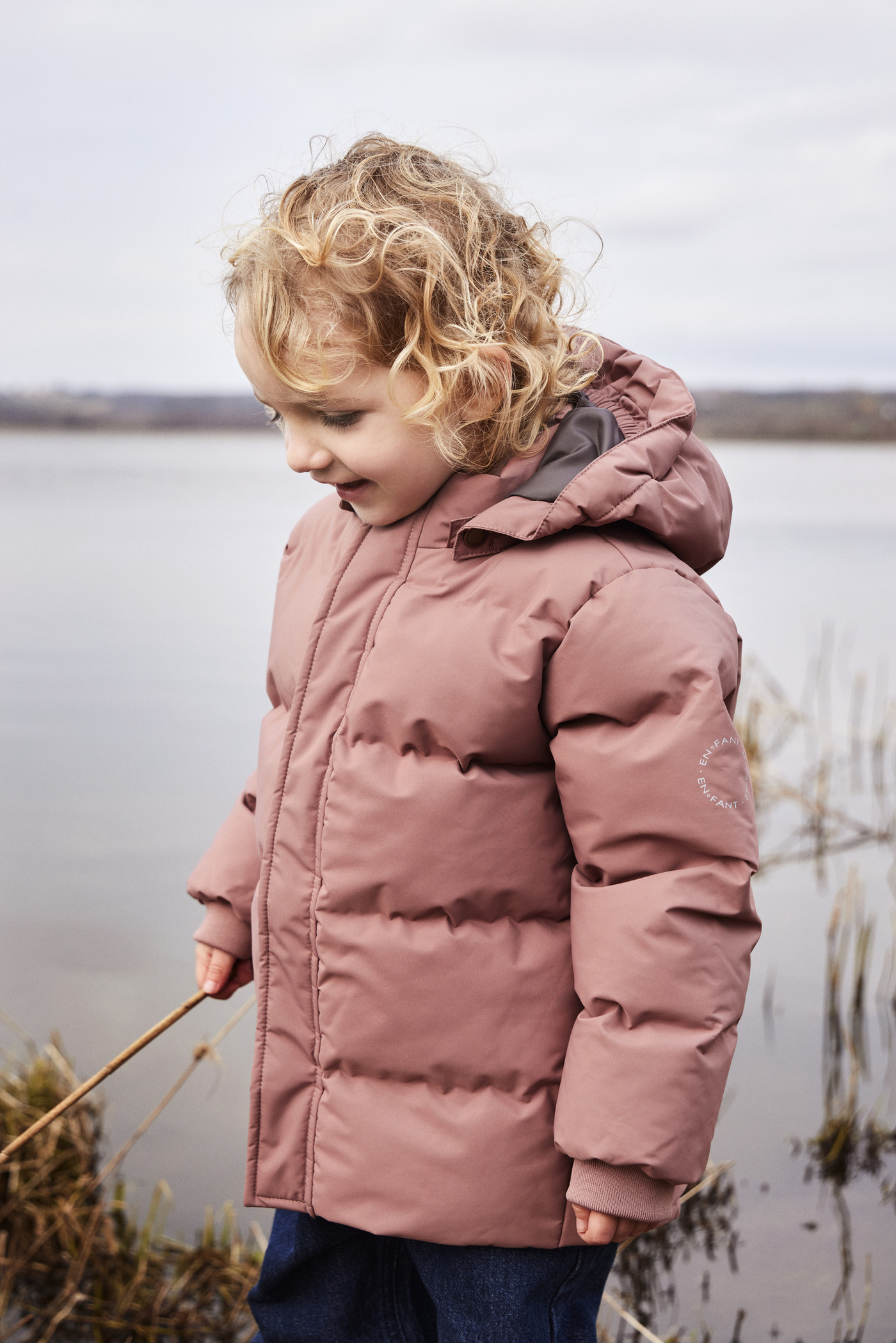 Warm, durable quilted jacket for your child from EN FANT. The material is breathable, windproof and waterproof, so your child can travel in rain, snow and wind without getting cold and wet. Tested water column pressure of 10,000 mm. and breathability of 3,000 g. The jacket is closed at the front with a high quality zipper. The chin guard ensures that the zippers under the chin do not disturb. The jacket has a detachable hood and a drawstring at the sleeves. Inside there is a name tag and a soft lining.