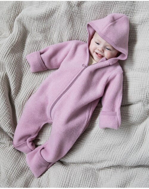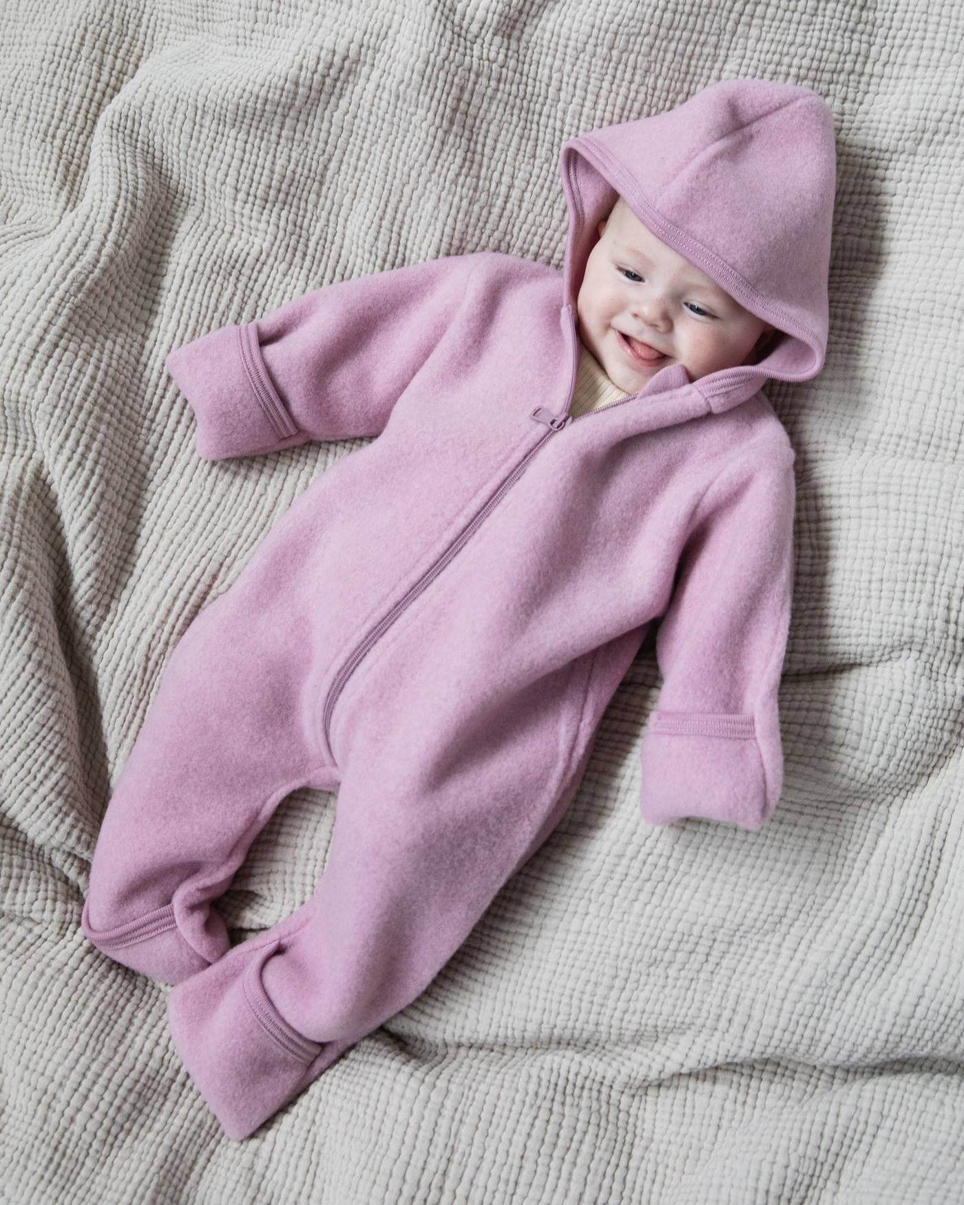 Engel Overall made of wool fleece with hood - Rosewood Mélange