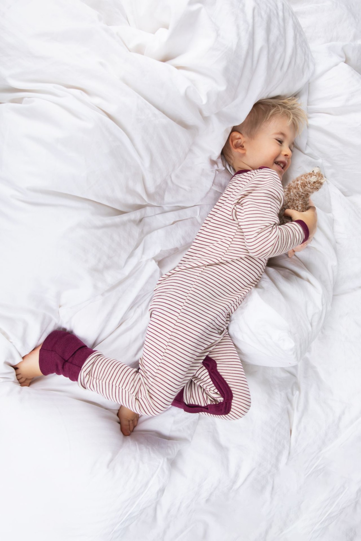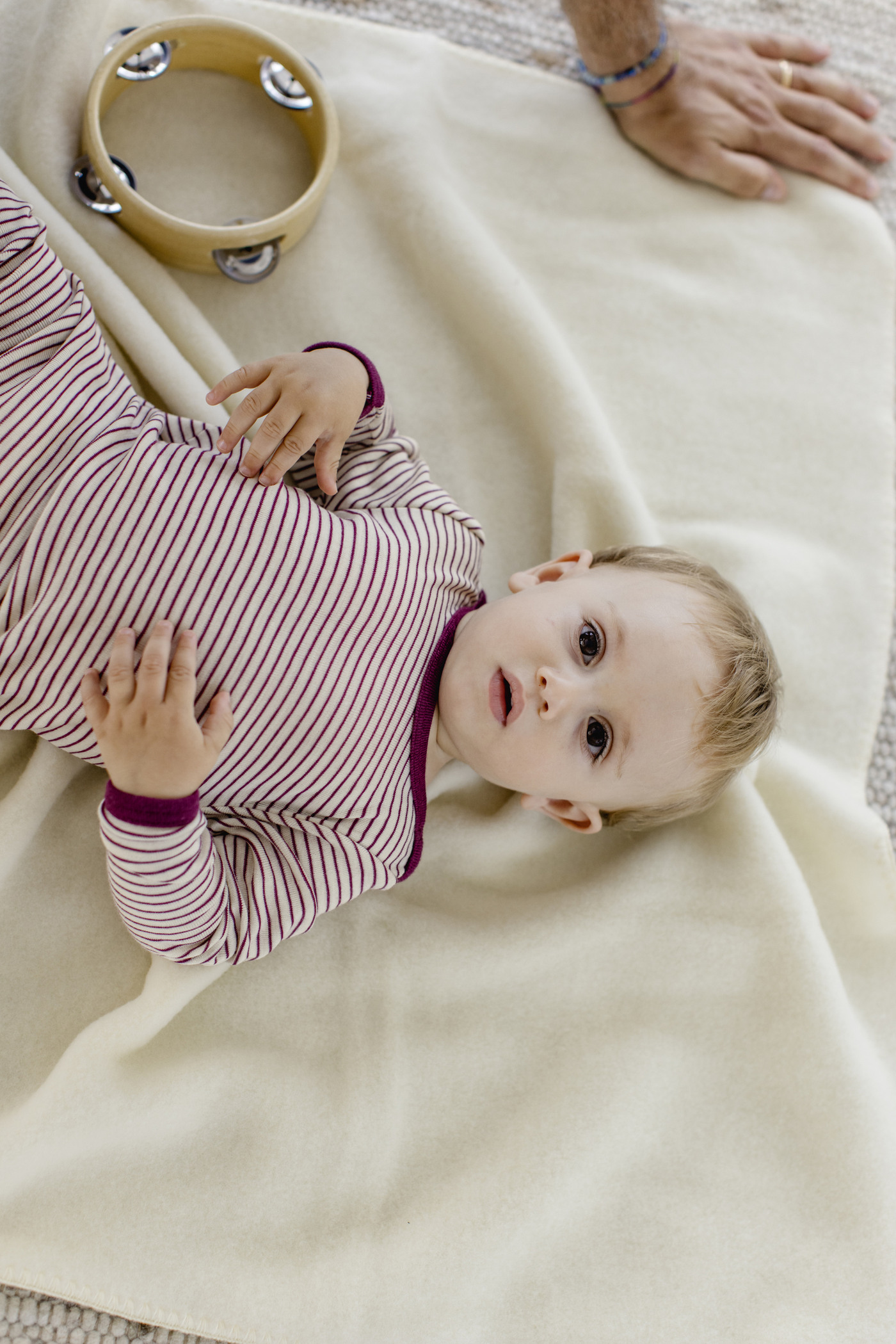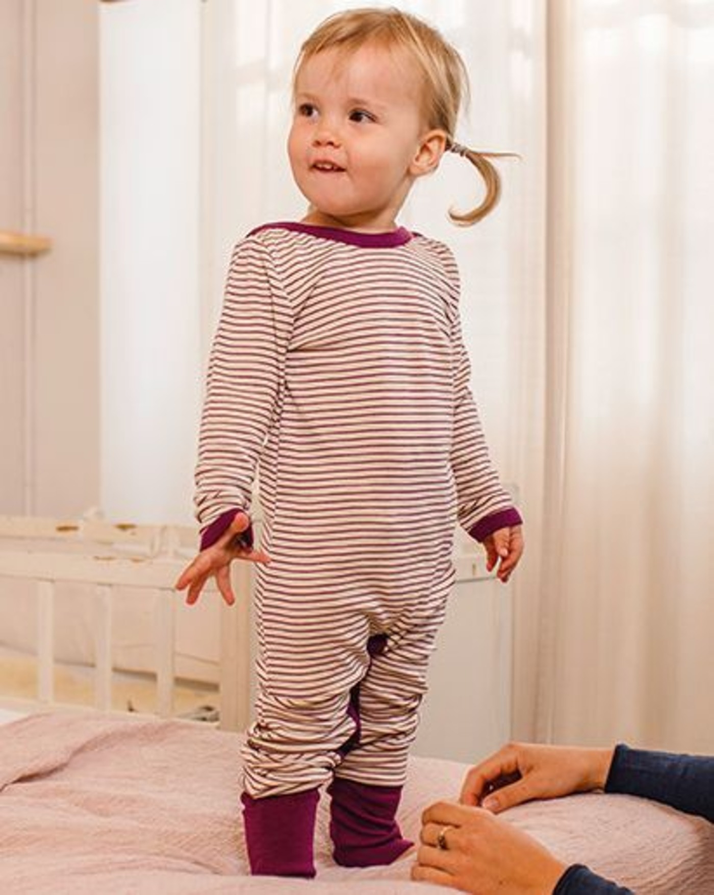 Engel Sleepingromper with cuffs at the legs made of wool/silk GOTS - Natur/Orchidee