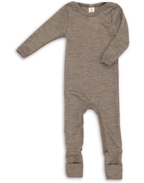 Engel Sleepingromper with cuffs at the legs made of wool/silk GOTS - Walnuss