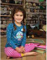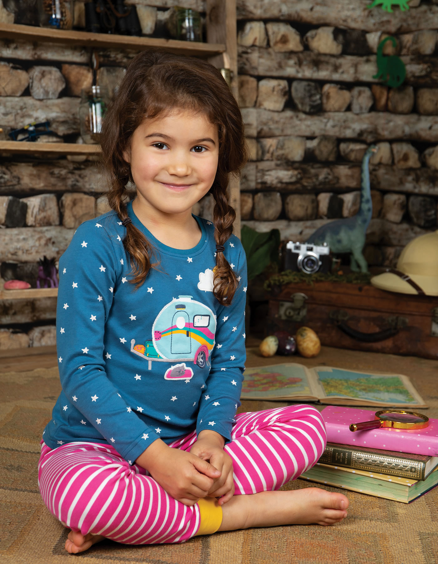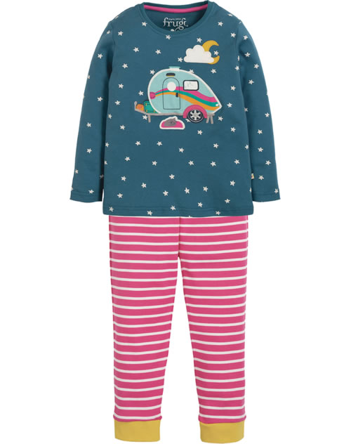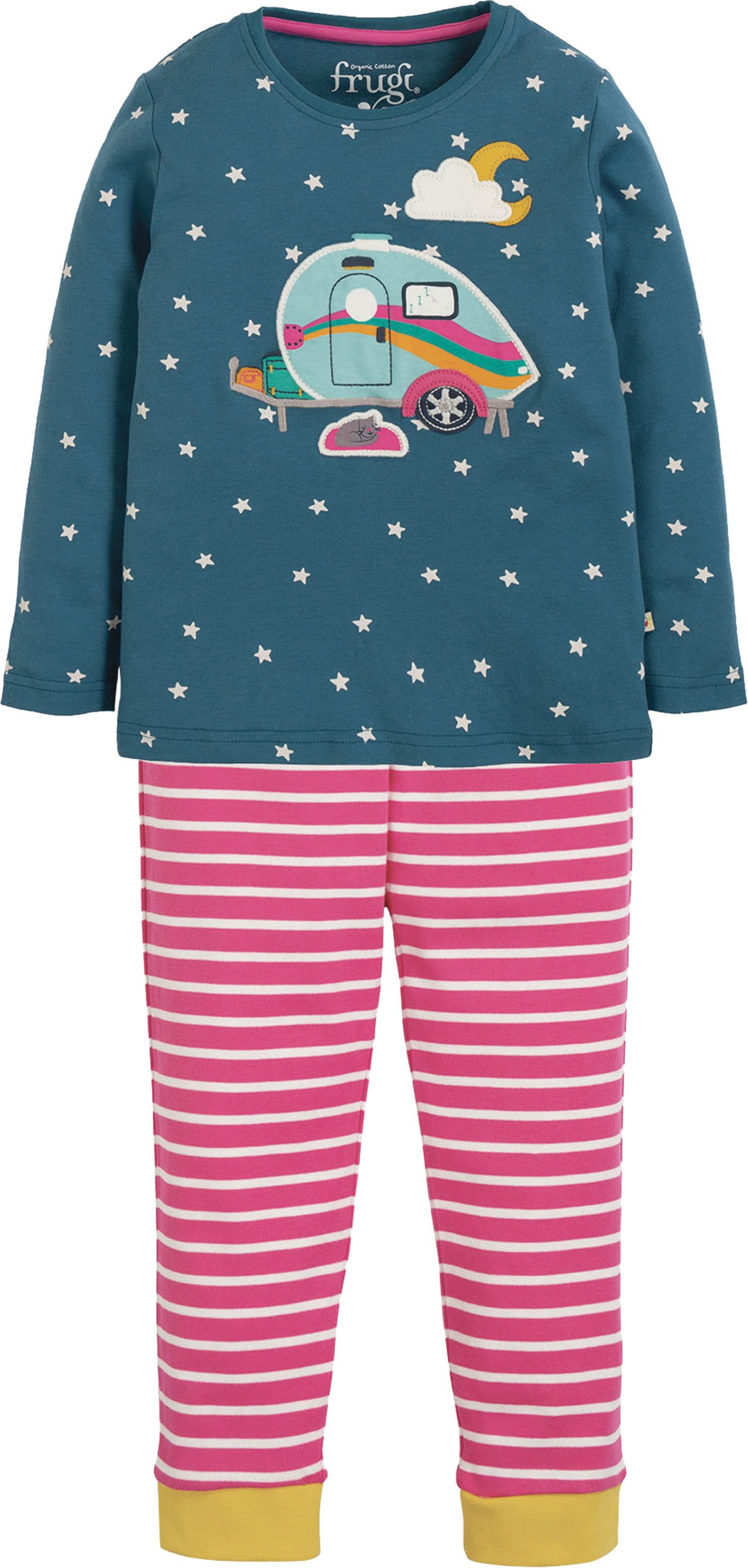 Frugi Pyjama Long John PJs Navigator CARAVAN steely blue star