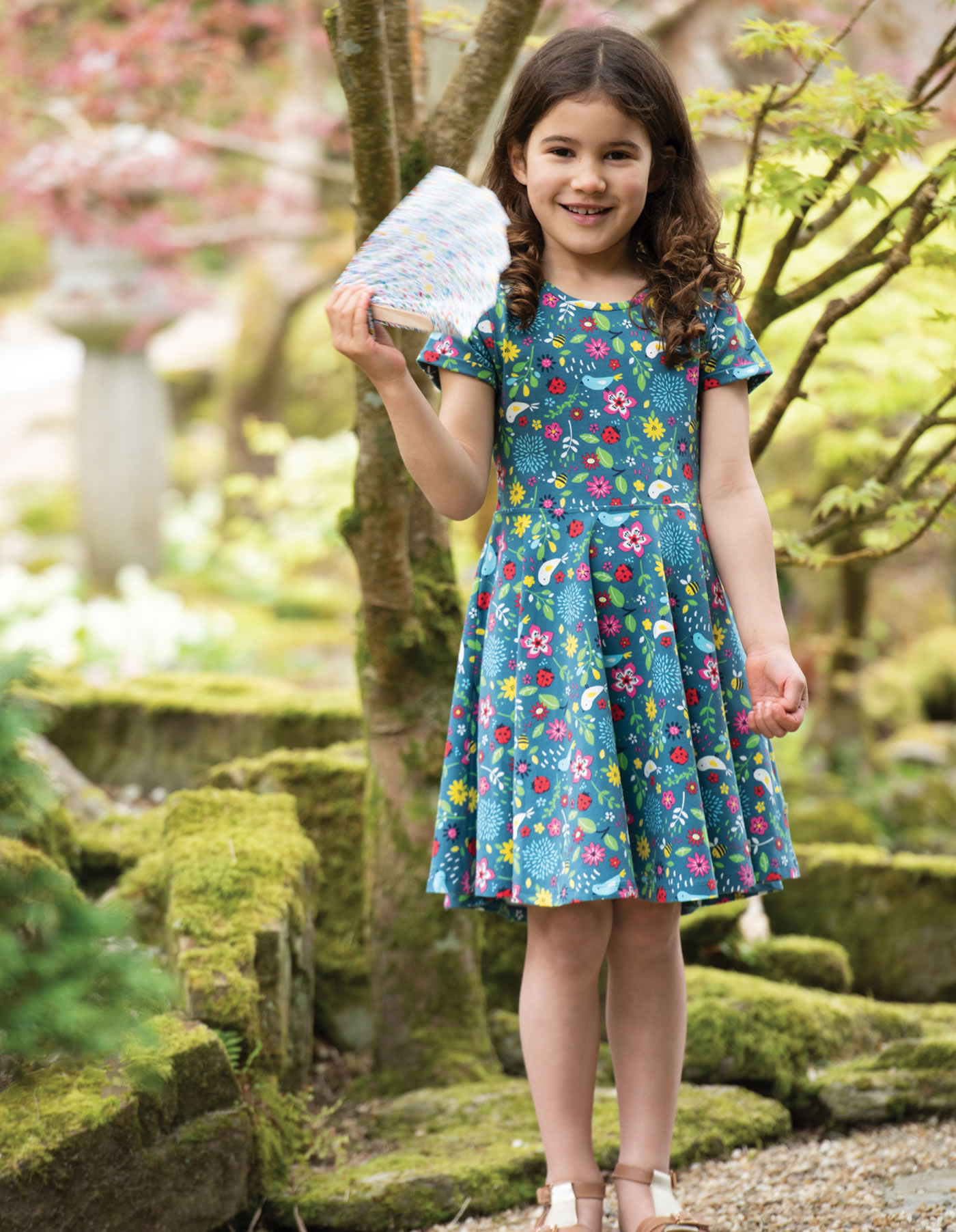 Pretty short-sleeved dress with colorful all-over print by FRUGI. The jersey dress has a wide full skirt and is sure to quickly become the girls favorite. The material made of 100% organic cotton ensures a comfortable fit.