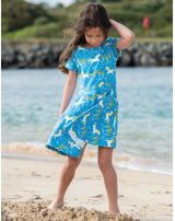Pretty short-sleeved dress in blue with unicorn all-over print by FRUGI. The jersey dress has a wide full skirt and is sure to quickly become the girls favorite. The material made of 100% organic cotton ensures a comfortable fit.