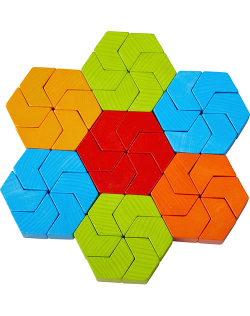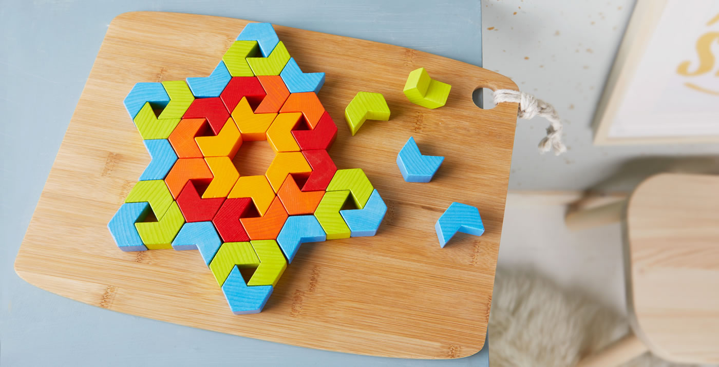 Keep arranging the wooden chevrons until they form a beautiful kaleidoscope. Children can let their imagination run wild with these colorful Kaleidoscope Chevrons. The harmonious set of colors contributes to the fun. At the same time, fine motor skills are developed and creativity is rewarded.