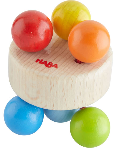 Babies simply adore this sturdy wooden clutching toy with its cheerful colors and entertaining rattling sound.