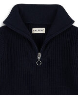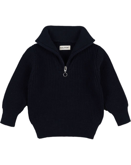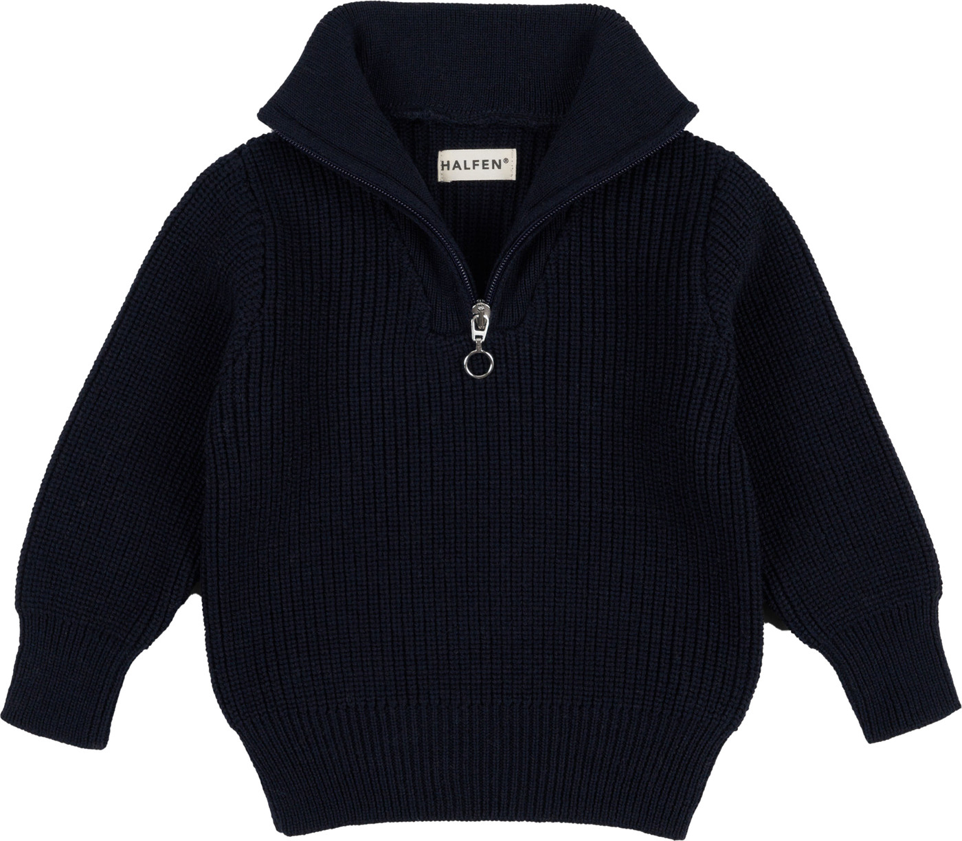 Very comfortable and high-quality sweater made of new wool with a stand-up collar from HALFEN KNITTING. The material supports a healthy skin climate. A sweater is a woolen slip-on sweater that can be opened and closed with a short zipper on the collar.