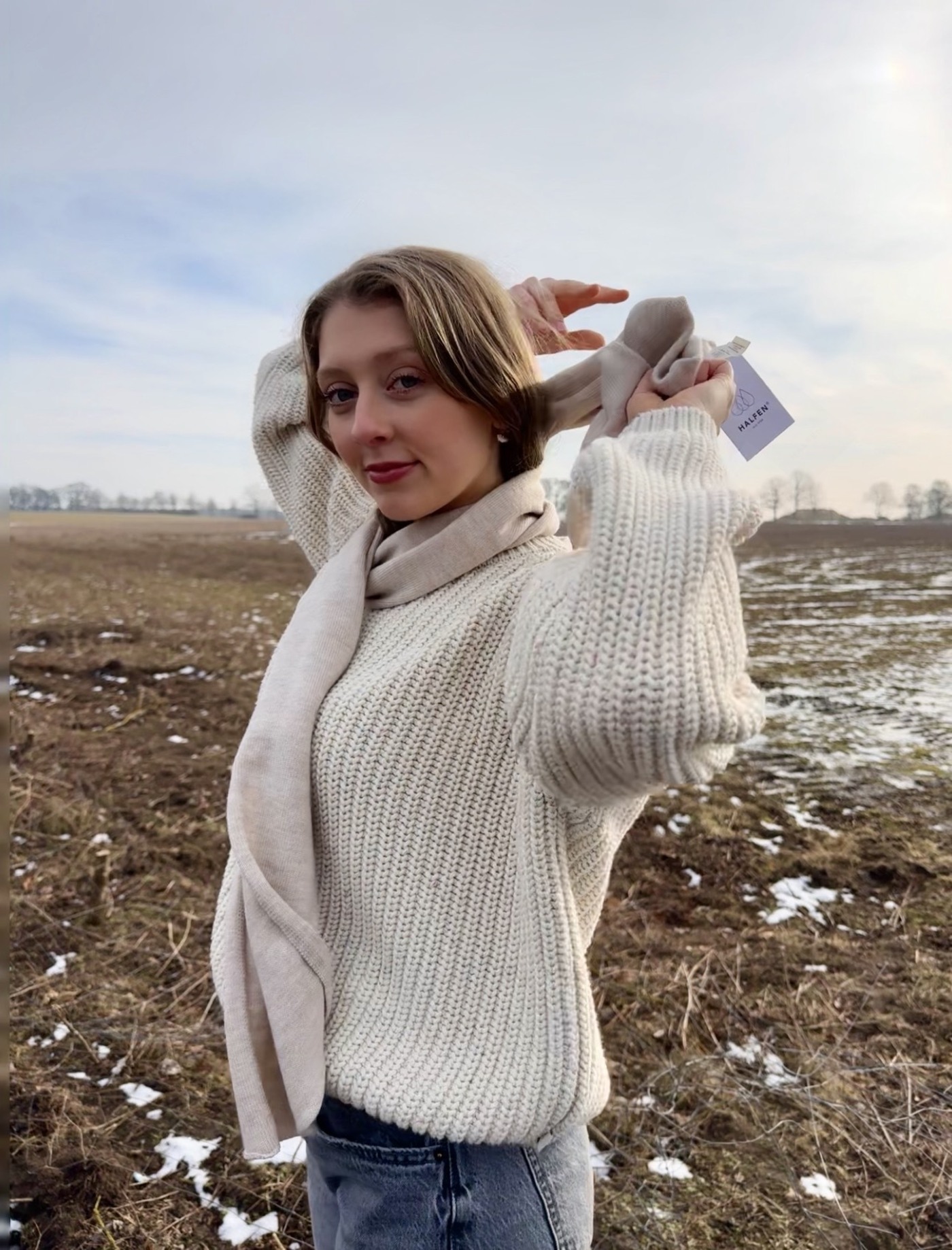 Halfen Strickerei Womans Scarf Merinowool - Natur